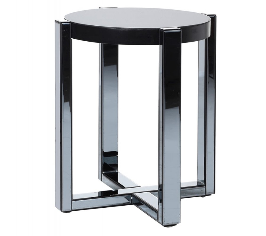 Štýlový príručný stolík Mirea okrúhleho tvaru je kúskom vhodným predovšetkým do moderne ladených interiérov. Zaujme vďaka svojej konštrukcii z MDF a skla so zrkadlovým efektom, ktorý vo vašich priestoroch vytvorí štýlový vzdušný efekt. Elegantný vzhľad je tvorený kruhovou povrchovou doskou a geometrickou konštrukciou. Príručný stolík Mirea skvelo zapadne do tmavšie ladených obývačiek, v ktorých vytvorí luxusný efekt. Jedinečnú štýlovú kombináciu vytvorí napríklad s kovovým, skleneným či chrómovým nábytkom, doplnkami v art-deco štýle a luxusnými čalúnenými sedačkami a kreslami.