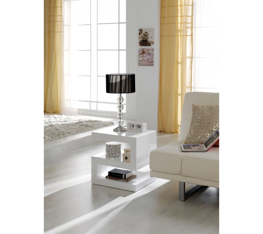Moderný lesklý príručný stolík Danea bielej farby v tvare písmena Z 50cm