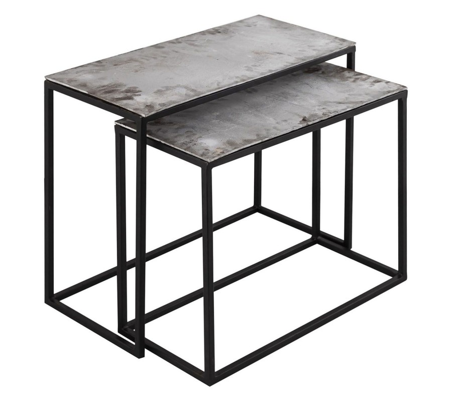 Dizajnový set dvoch príručných stolíkov Farrah zaujme predovšetkým milovníkov moderného a nadčasového nábytku. Stolíky obdĺžnikového tvaru disponujú povrchovou doskou v sivej farbe z kovu s jedinečnou povrchovou úpravou s textúrou, ktorá vzniká ručným odlievaním. Moderný kontrast dotvárajú čierne kovové nohy. Vďaka univerzálnej farebnej kombinácii set stolíkov Farrah poľahky zapadne do rôznofarebne ladených miestností a nebudete mať problém kombinovať ho ani s ďalším nábytkom, modernými doplnkami či dekoráciami. Zapadne do tmavšie i svetlejšie ladených obývačiek, pracovní či chodbových priestorov. Pre unikátny moderný vzhľad odporúčame kombináciu aj s ďalšími kúskami z kolekcie Farrah.