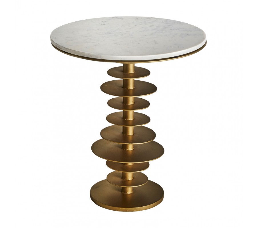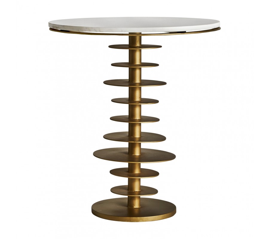 Štýlový art-deco okrúhly príručný stolík Amuny s mramorovou vrchnou doskou a špirálovou kovovou podstavou zlatej farby 58cm