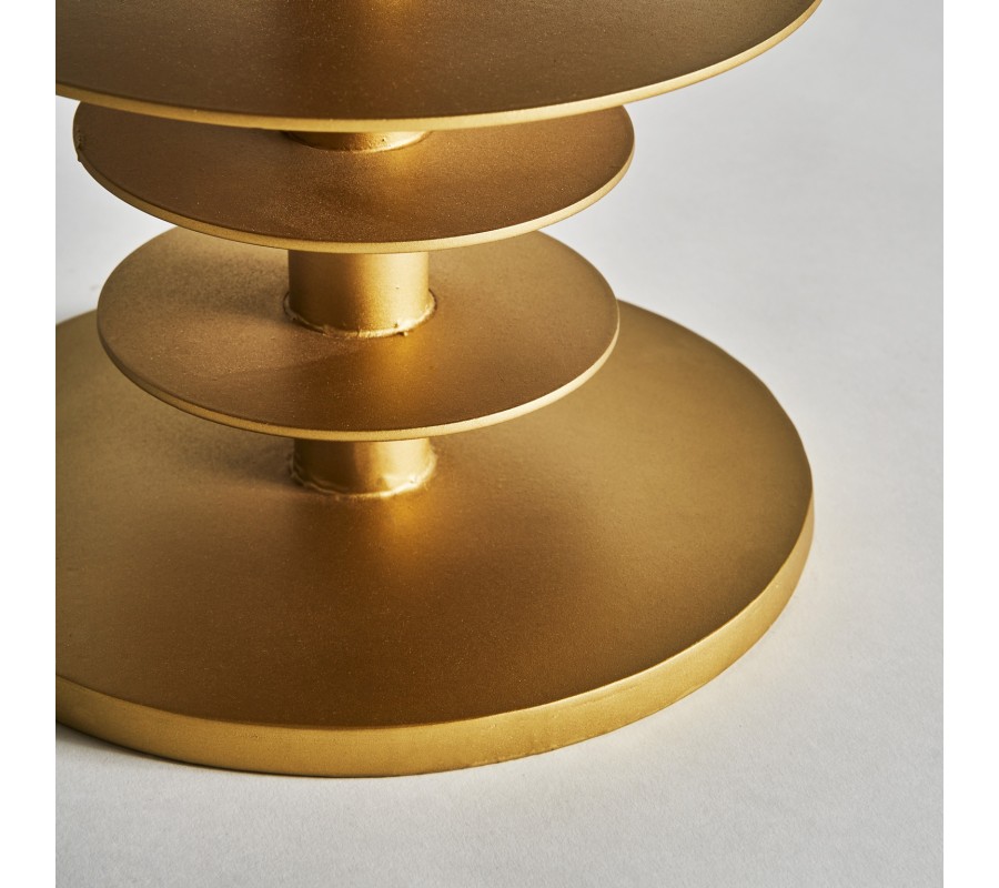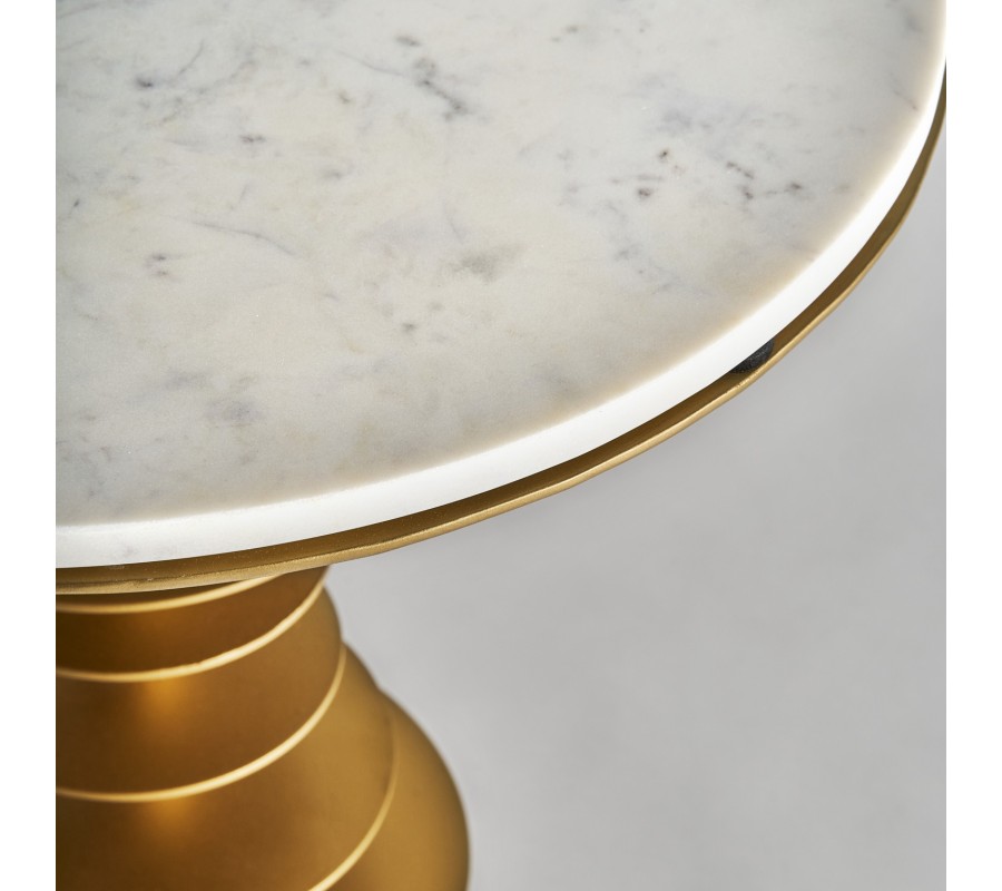 Mramorový príručný stolík Amuny je krásnym a jedinečným kúskom ktorý spája experimentálny vzhľad s luxusným vyhotovením. Kovová podstava zlatej farby je naozaj unikátne spracovaná v nepravidelnom špirálovitom vzhľade, ktorý zaurečne na seba upúta pozornosť. Kvalitné kovové vyhotovenie podstavy zlatej farby je doplnené mramorovou vrchnou doskou tohto stolíka, ktorá krásne dopĺňa dizajnovú stránku príručného stolíka Amuny. Mramorová vrchná doska sa nesie v okrúhlom tvare v lesklom prevedení s dôrazom na mramorovú štruktúru. Okrúhle tvary, či už na podstave alebo na vrchnej doske sú krásnym príkladom extravagantného art-deco štýlu, v ktorom odporúčame kombinovať príručný stolík Amuny. Jeho kovová podstava v zlatej farbe najlepšie vynikne s tmavým nábytkom so zlatými prvkami, pričom sa zvírazní aj mramorová vrchná doska.