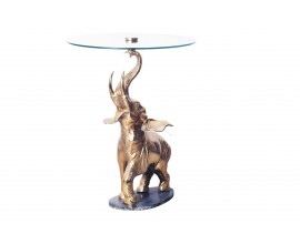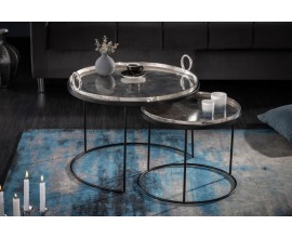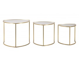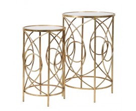 Art-deco set dvoch príručných stolíkov Satordi kruhového tvaru so zlatou kovovou konštrukciou 70cm