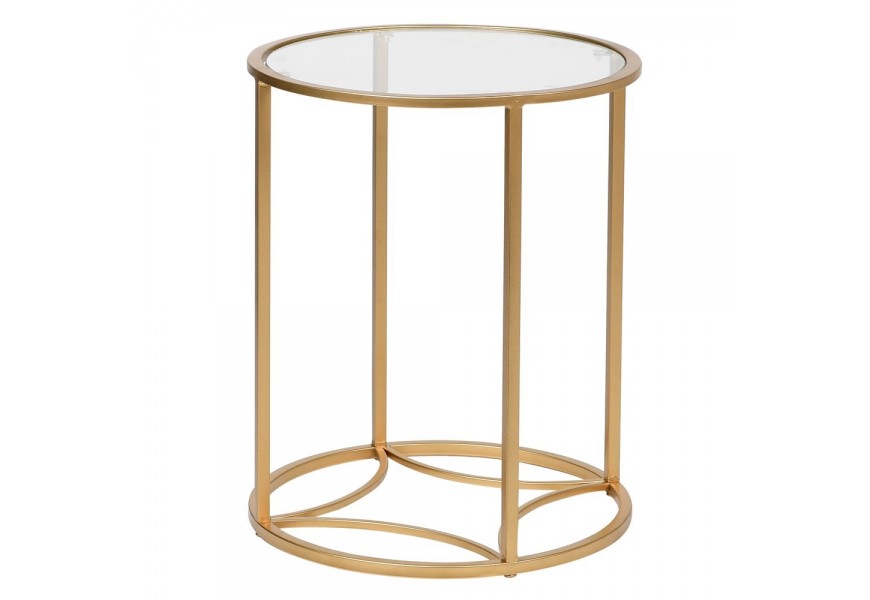 Art-deco okrúhly príručný stolík Eloisse do obývačky so zlatou konštrukciou a sklenenou povrchovou doskou 38cm