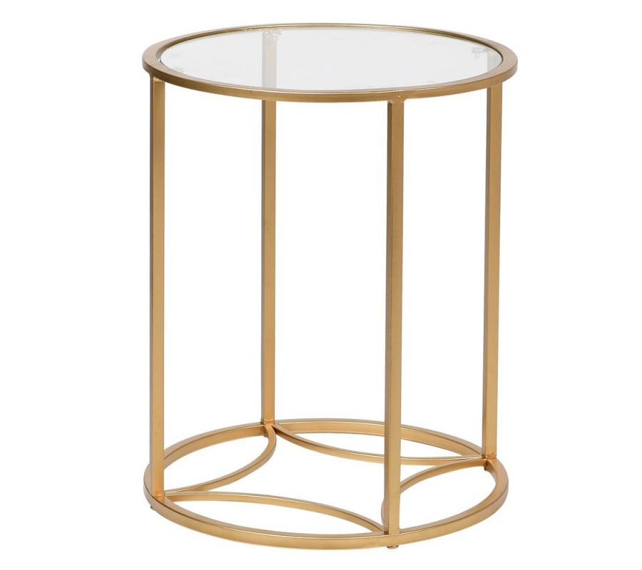 Príručný stolík Eloisse sa vyznačuje predovšetkým svojím elegantným nadčasovým vzhľadom. Stolík kruhového tvaru disponuje minimalistickou konštrukciou z kovu v žiarivej zlatej farbe, ktorá spestrí váš interiér a dodá mu luxusný nádych. Do konštrukcie je vsadená sklenená povrchová doska, ktorá vkusne dopĺňa kovové telo a vytvára príjemný harmonický dojem. Dizajnový prvok v podobe hviezdicového útvaru na spodnej časti konštrukcie je príjemným osviežením minimalistického moderného vzhľadu. Kombinácia materiálov a farieb dodáva stolíku nádych art-deco štýlu, preto vynikne predovšetkým v takto ladených priestoroch obývačiek, kancelárií či chodieb.