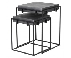Dizajnová industriálna sada dvoch štvorcových príručných stolíkov Black Iron v čiernej farbe 60 cm
