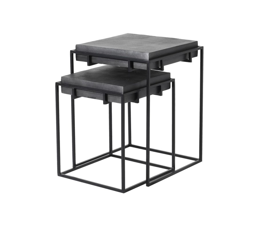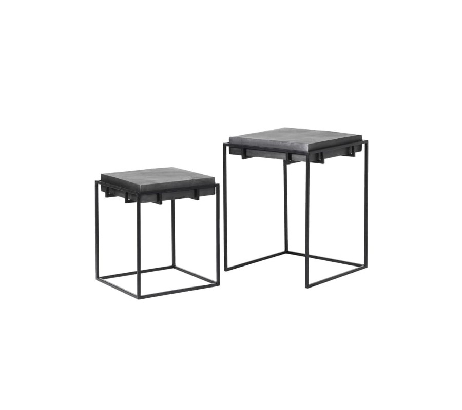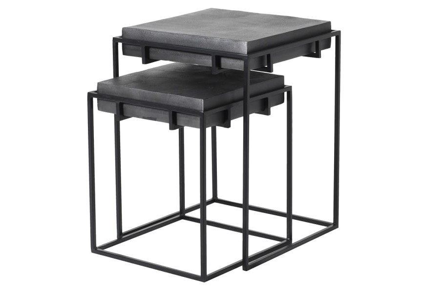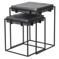 Sada príručných stolíkov Black Iron skvele doplní obývačku či pracovňu v industriálnom štýle. Hodí sa tiež ku kreslu s koženým poťahom, alebo k modernému konferenčnému stolíku s tmavou kovovou podstavou.