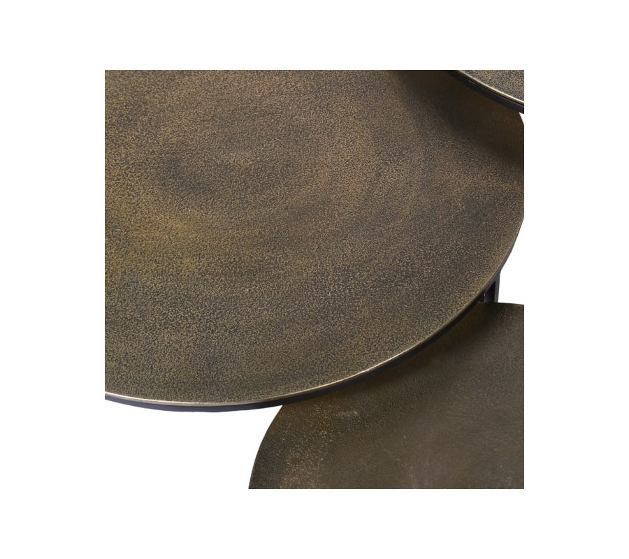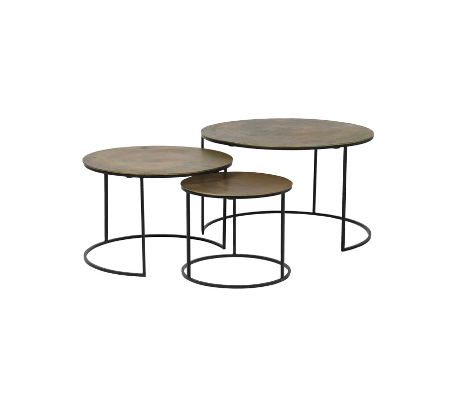 Industriálny set troch konferenčných stolíkov Black Iron z kovu s mosadznou povrchovou doskou okrúhleho tvaru 76cm
