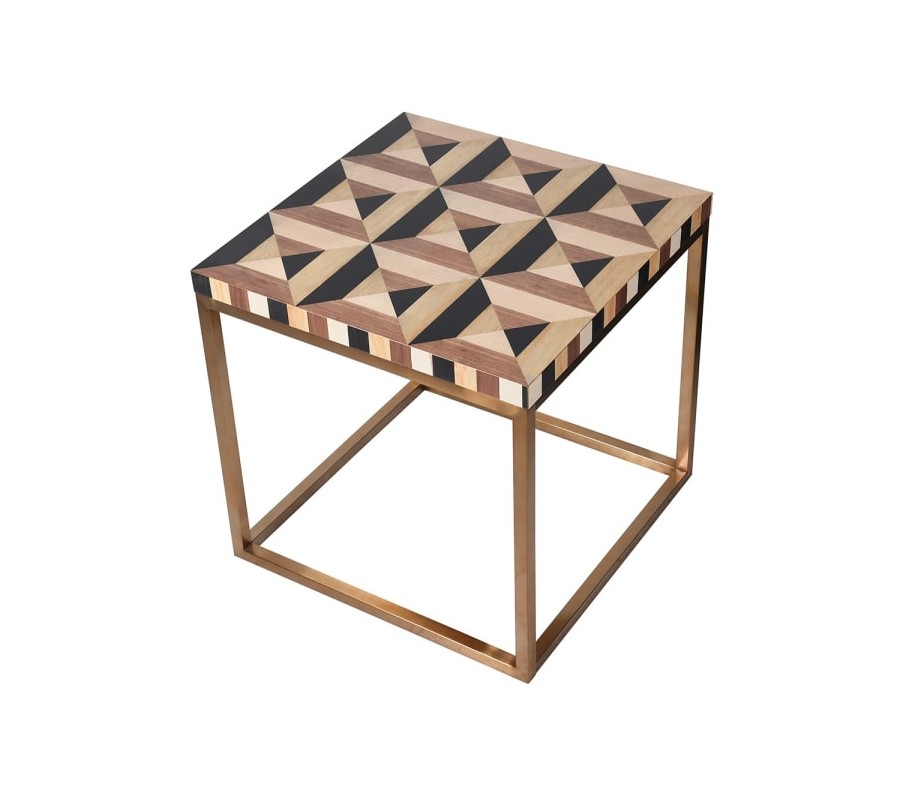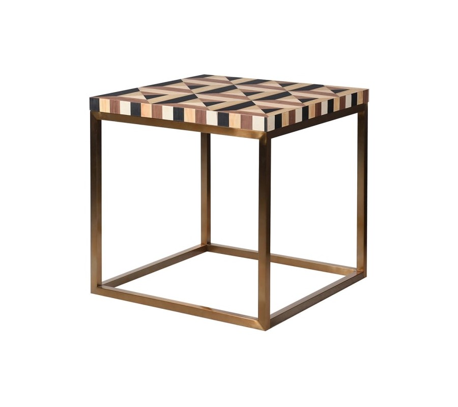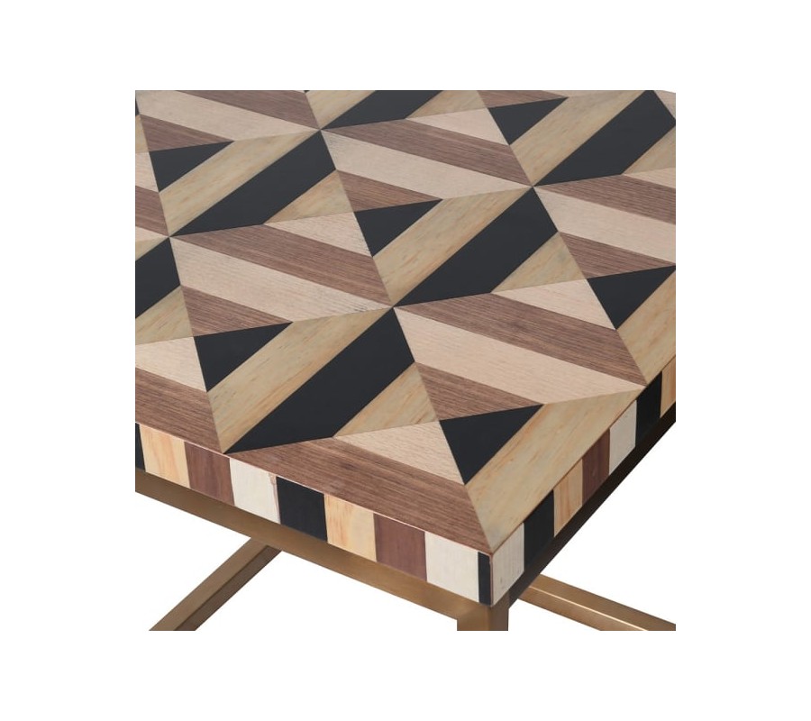 Art deco príručný stolík Betlien štvorcového tvaru z dreva s geometrickým dizajnom a s kovovou konštrukciou 61cm