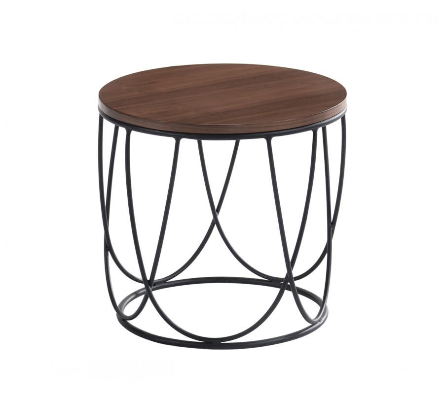 Škandinávsky okrúhly príručný stolík Nordica Nogal z orechovo hnedého dreva s čiernou kovovou podstavou 45cm
