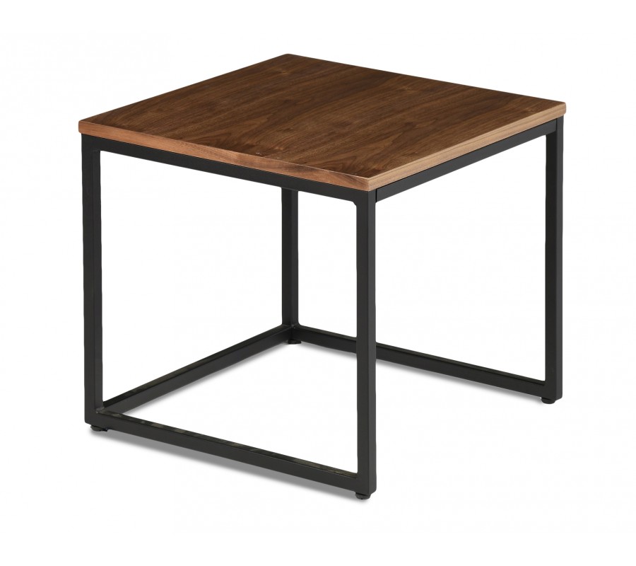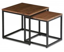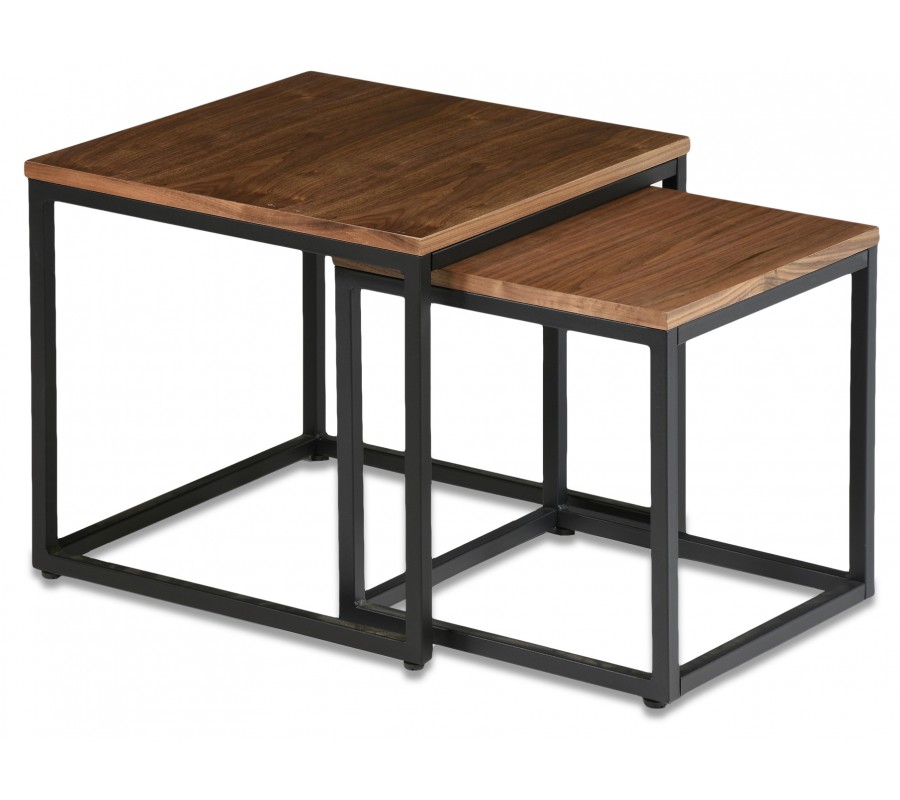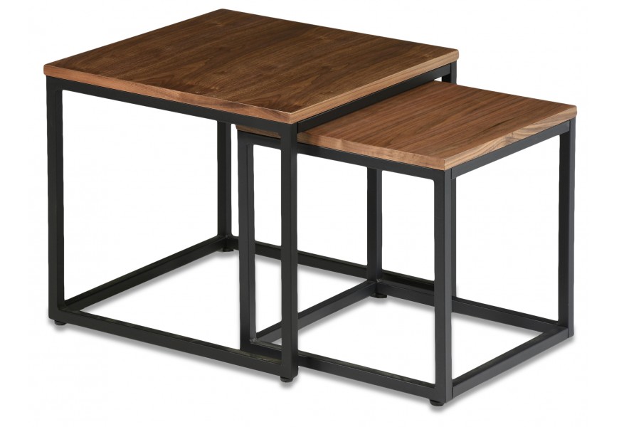 Moderný set konferenčných stolíkov Vidar z dreva s čiernou kovovou podstavou štvorcový hnedý 50cm