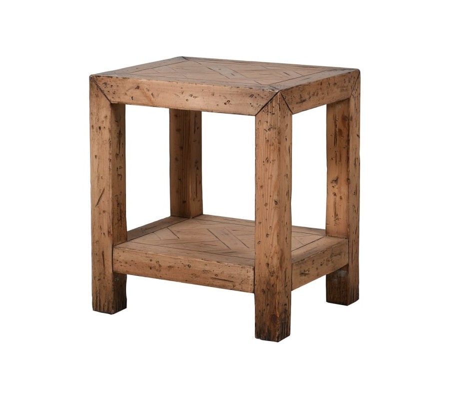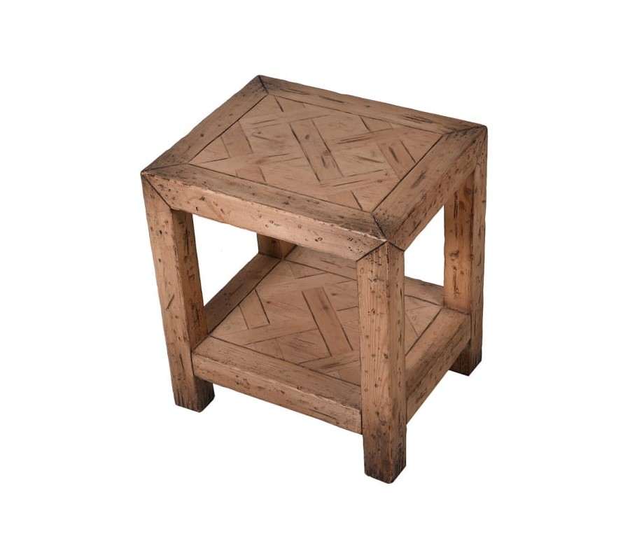Vidiecky masívny nočný stolík Emilio hnedej farby s parketovým vzorom 64cm