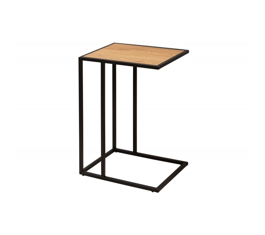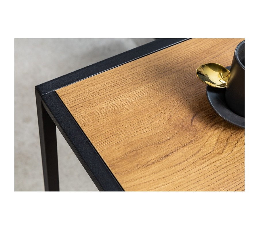 Industriálny príručný stolík Industria Natura s doskou z dreva s dubovou dyhou a čiernou podstavou kovu bledo hnedý 63cm