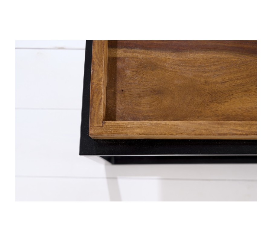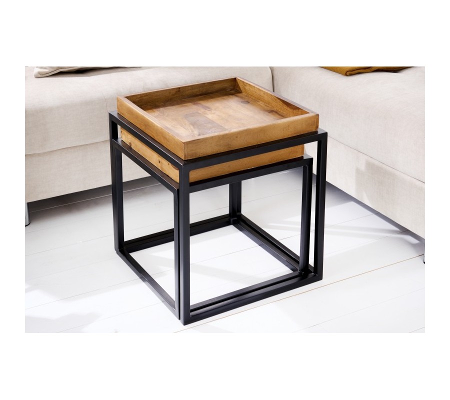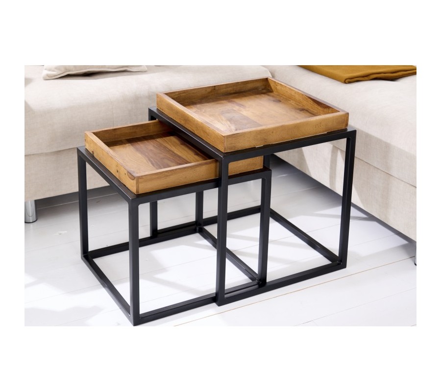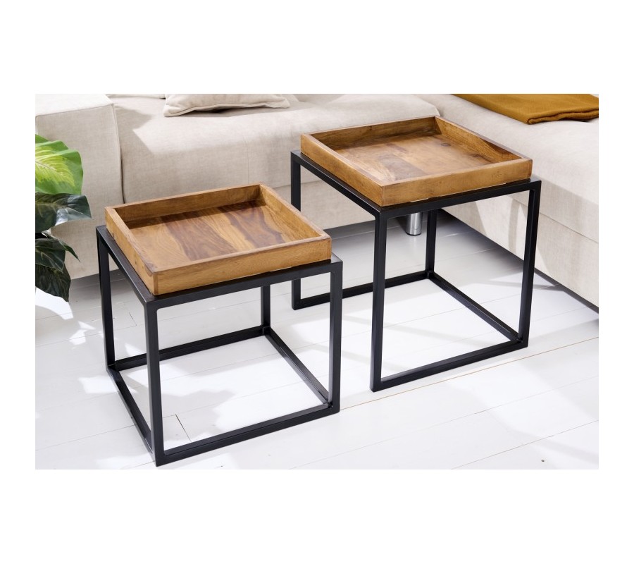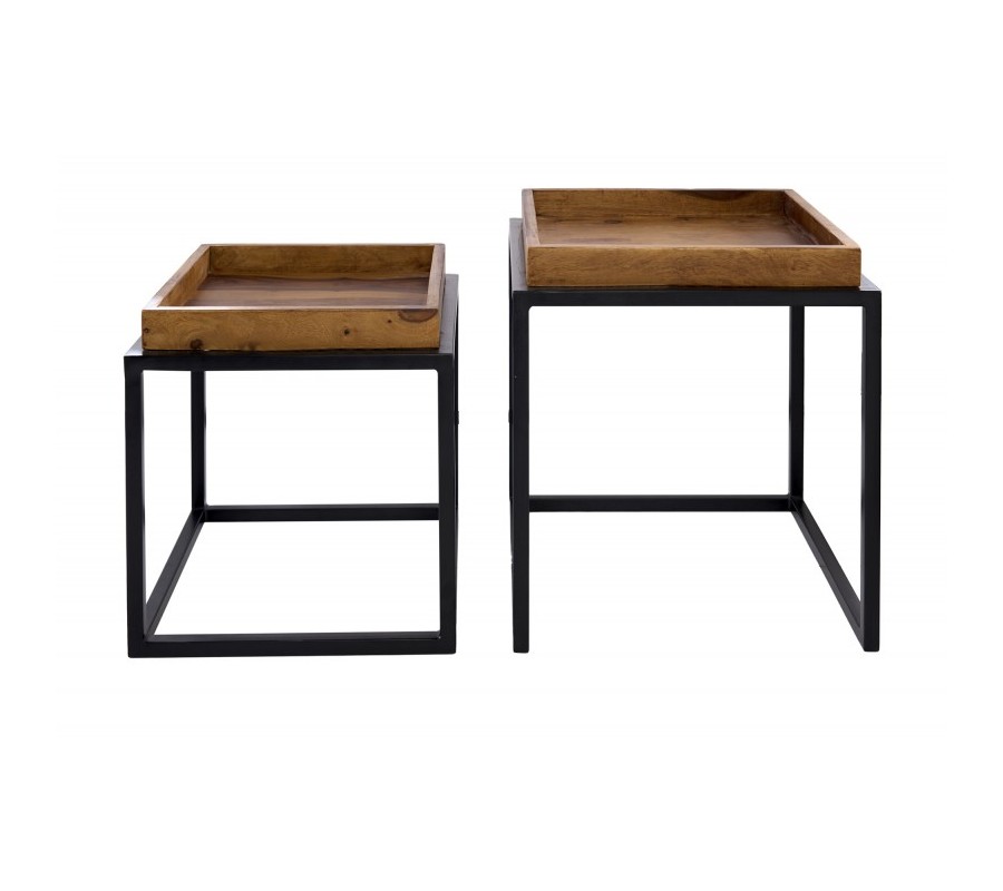Dizajnový set dvoch príručných stolíkov Elements z palisandrového masívu s čiernou kovovou konštrukciou
