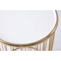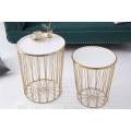 Set dvoch art deco príručných stolíkov Saul II v zlatej lesklej farbe a bielymi okrúhlymi vrchnými doskami 48cm