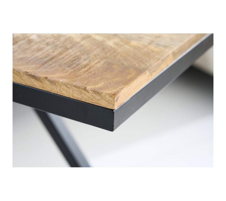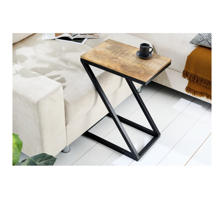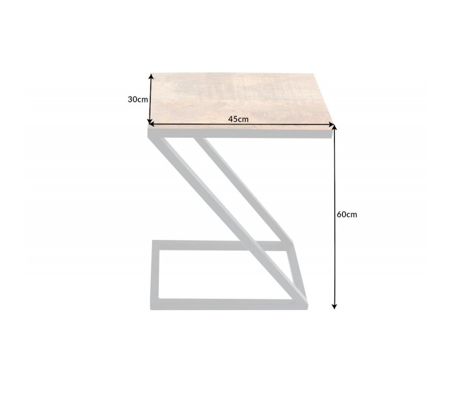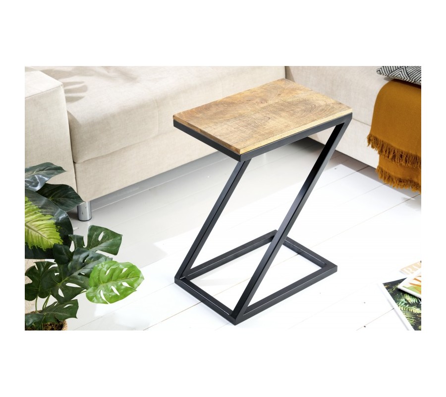 Dizajnový príručný stolík Dahle je dokonalým doplnkom pre všetkých milovníkov moderného štýlu bývania a minimalizmu. Upúta svojou jednoduchou no nadčasovou konštrukciou, ktorú tvorí čierna kovová podstava a obdĺžniková povrchová doska z mangového masívu. Naturálna povrchová úprava v prírodnom hnedom odtieni necháva vyniknúť prirodzenú kresbu dreva a vďaka precíznemu lakovanému ošetreniu pôsobí elegantným dojmom. Konštrukcia v tvare písmena Z vytvára jedinečný moderný nádych, vďaka ktorému stolík poľahky upúta pozornosť a dostáva originálny nádych. Je vhodný na umiestnenie do obývačky k sedačke či kreslu, kde si nájde využitie ako odkladací príručný stolík, a taktiež ho možno umiestniť na chodbu či do kancelárie, prípadne do firemných či hotelových priestorov. Príručný stolík Dahle odporúčame kombinovať s ďalšími kúskami z masívneho dreva a doplnkami z kovu.