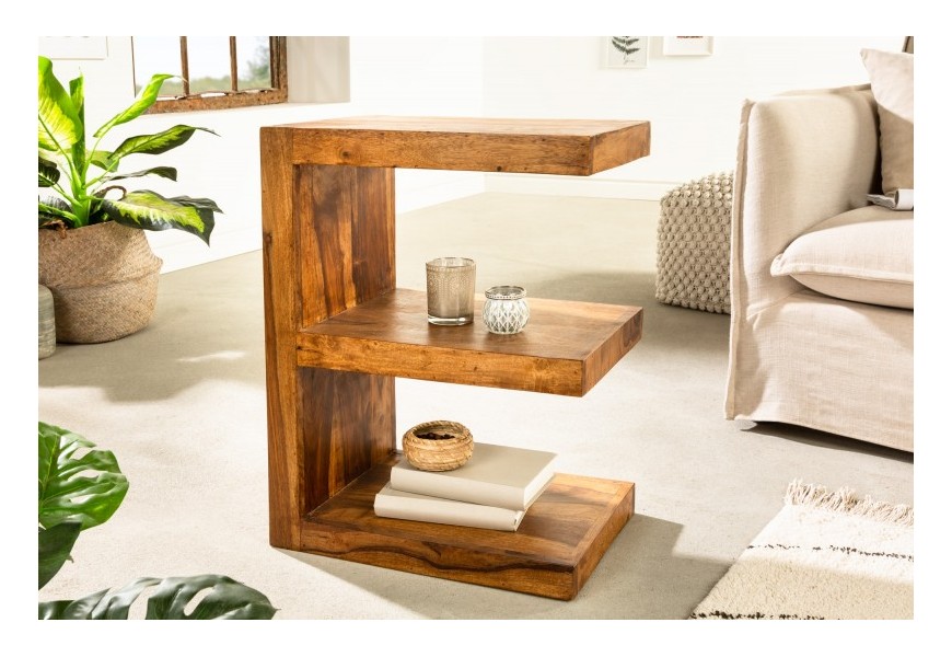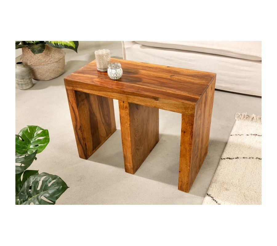 Vidiecky masívny príručný stolík Giant z masívneho dreva sheesham hnedý 60cm