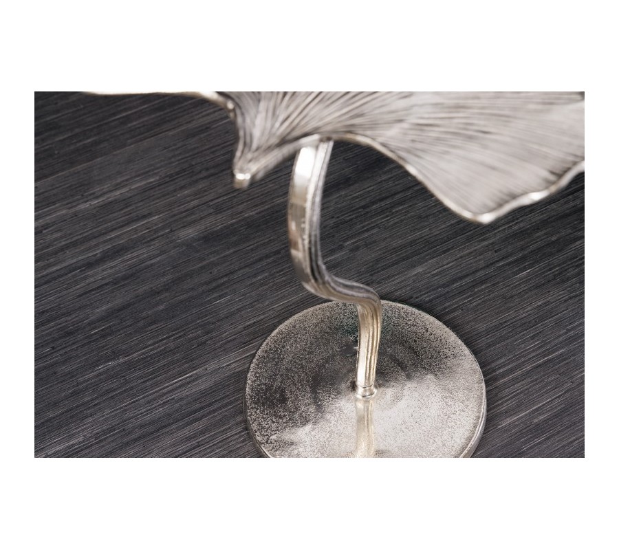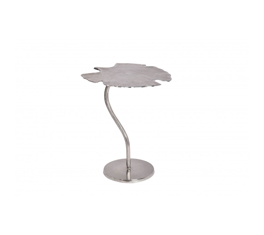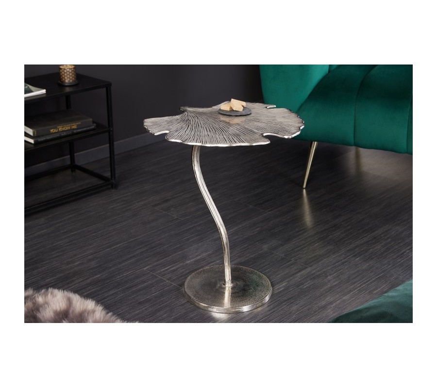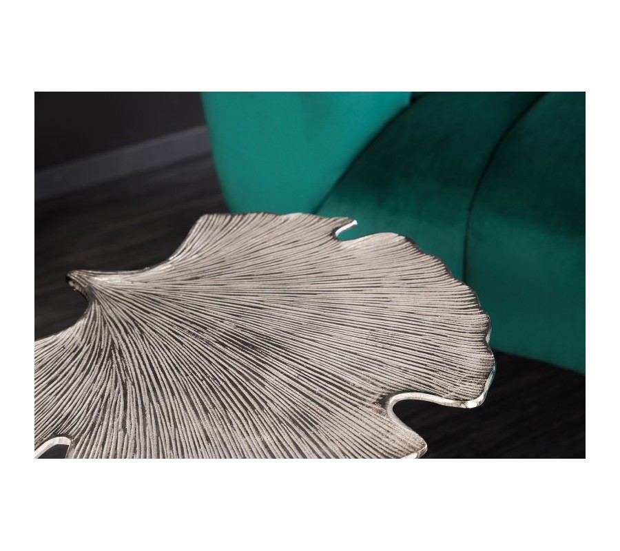 Art-deco dizajnový príručný stolík Ginko v tvare listu strieborný 53cm