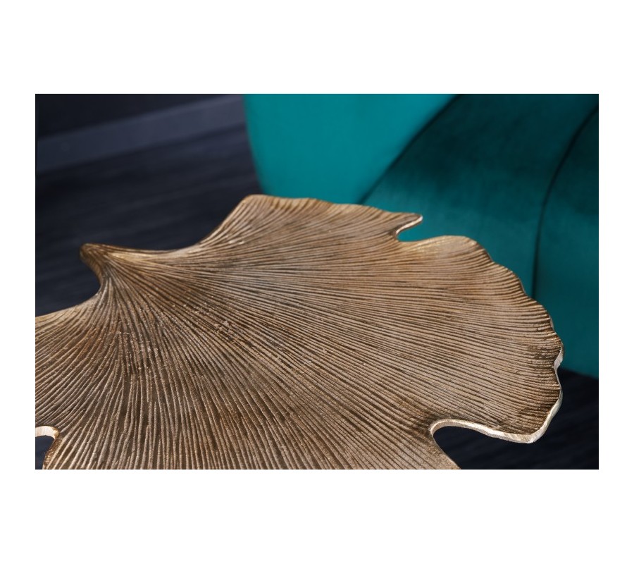 Art-deco dizajnový príručný stolík Ginko v tvare listu zlatý 53cm