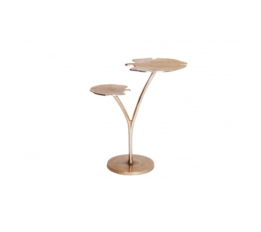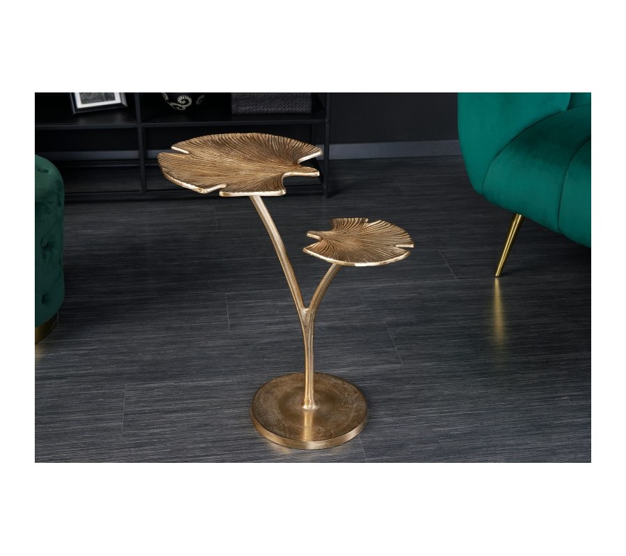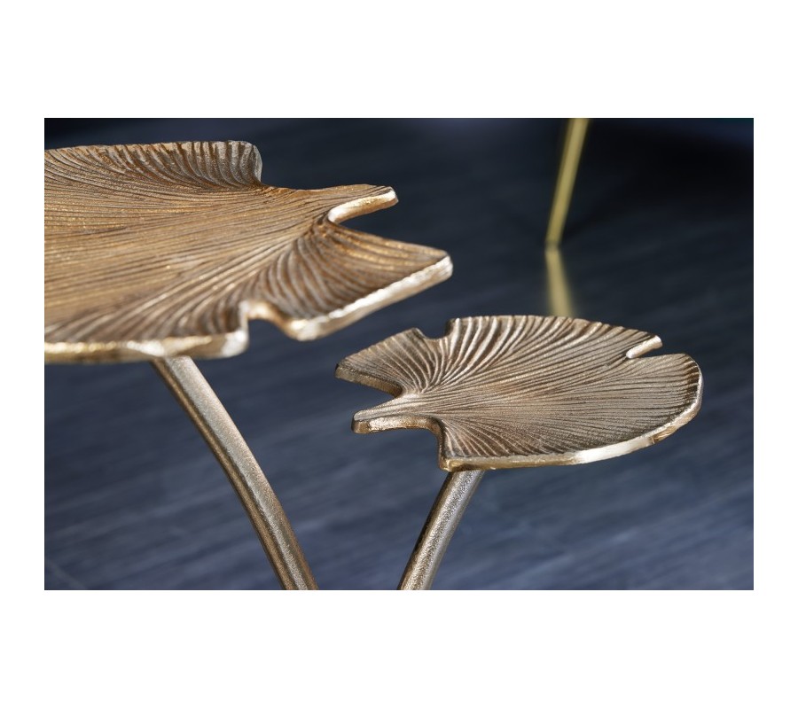 Dizajnový príručný stolík Ginko v art deco štýle s dvoma doskami v tvare listu v zlatej farbe 56cm
