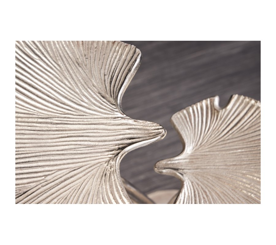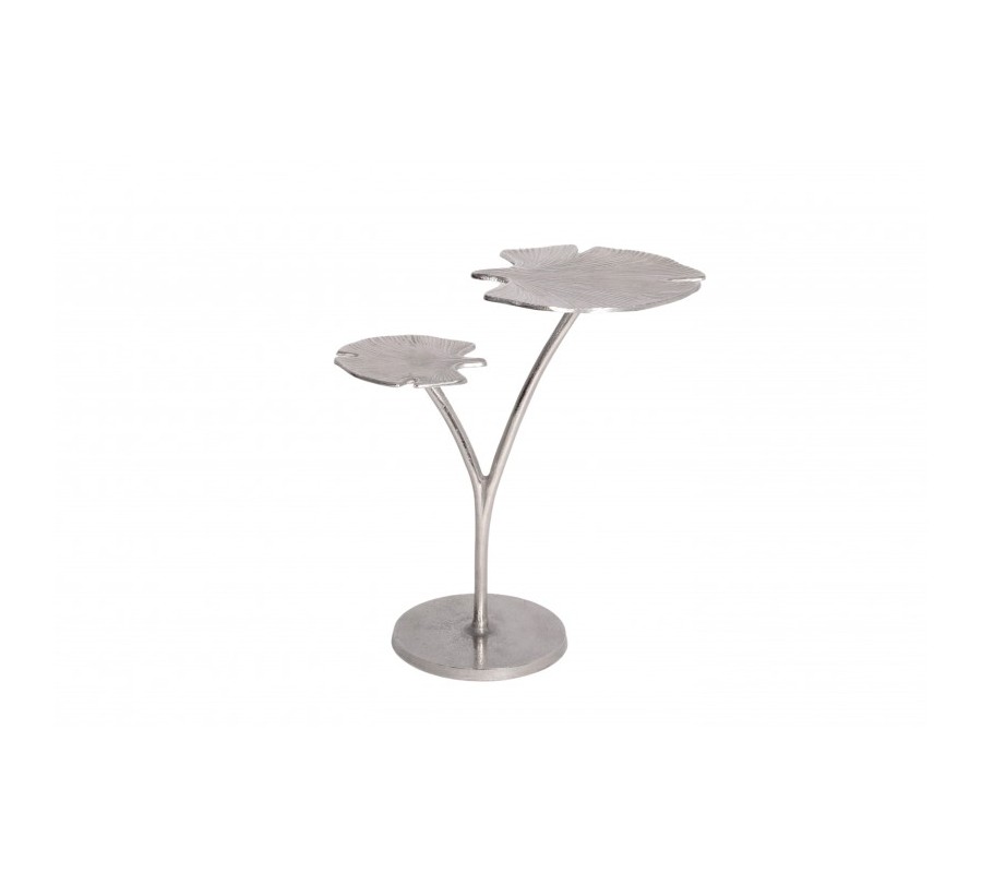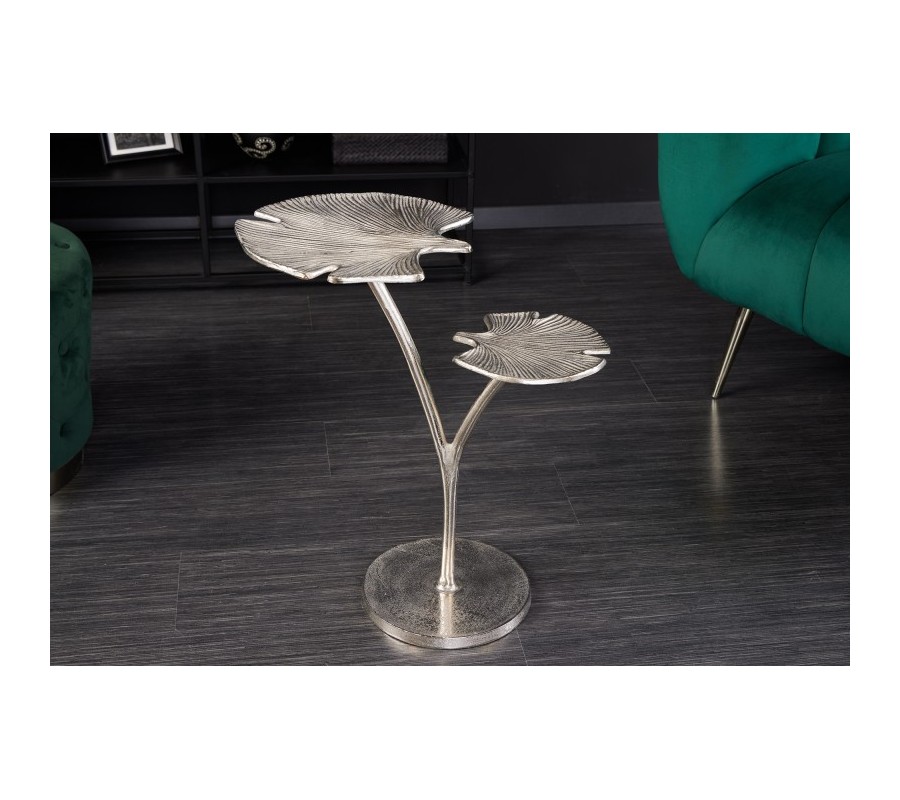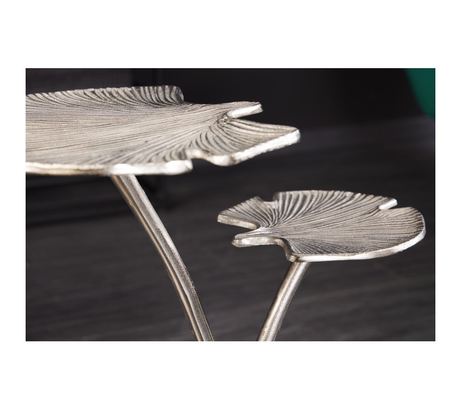 Art-deco strieborný príručný stolík Ginko s dvoma doskami v tvare listu kovový 56cm