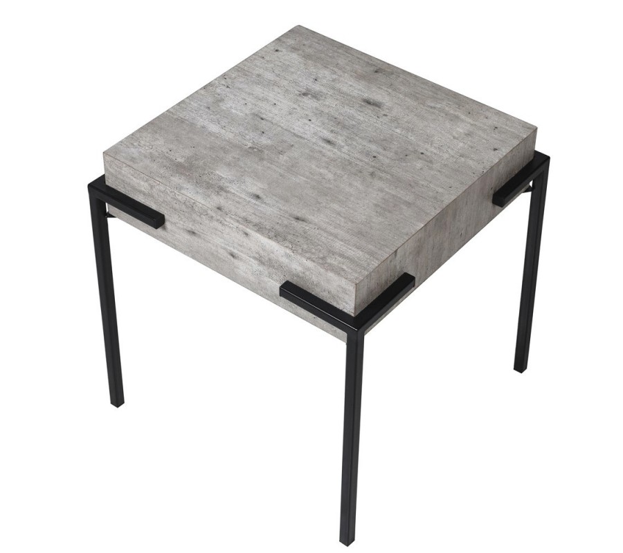 Kolekcia moderného nábytku Maelynn Vám ponúka krásny príručný štvorcový stolík v betónovom vzhľade, ktorý Vám prinesie nádych industriálneho štýlu priamo do Vašej luxusnej obývačky. Moderný príručný stolík Maelynn sa pýši dreveným vyhotovením, obohateným o povrchovú úpravu, ktorá vytvorí dizajn s čoraz viac populárnym betónovoým vyhotovením. Sivý industriálny vzhľad príručného stolíka je doplnený štyrmi železnými čiernymi nožičkami, ktoré dotvoria spomenutý industriálny nádych. Moderný príručný stolík Maelynn sa pýši minimalistickým vzhľadom, ktorý krásne doplní moderné obývačky s industriálnym nádychom, v kombinácií s čiernym kovovým nábytkom a doplnkami, so sivými či tmavšími sedačkami, a taktiež so živou zeleňou.