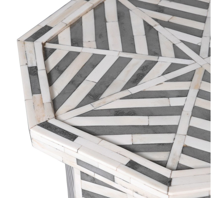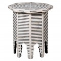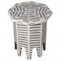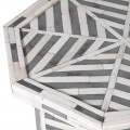 Vintage príručný stolík Garibaldi v sivo-bielom prevedení s intarziou z dreva, živice a kosti 51cm