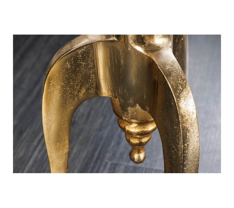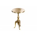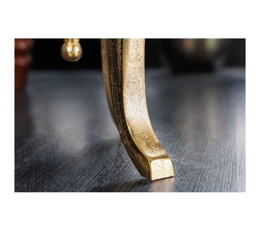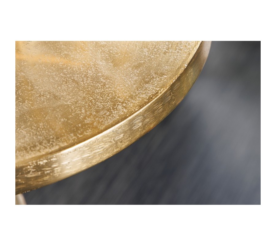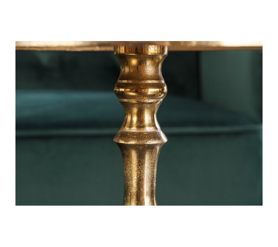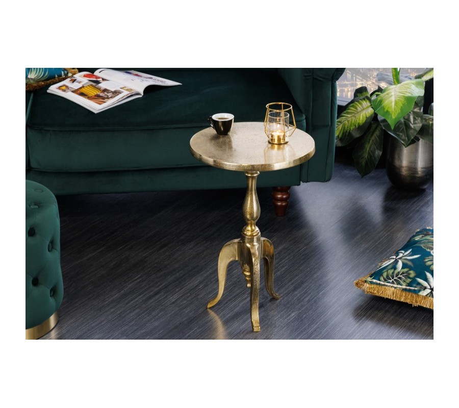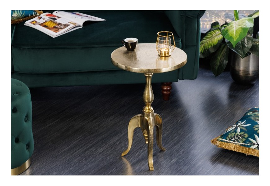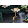 Glamour okrúhly príručný stolík Saphir z kovu v zlatej farbe s ozdobnou podstavou s tromi nožičkami 55cm