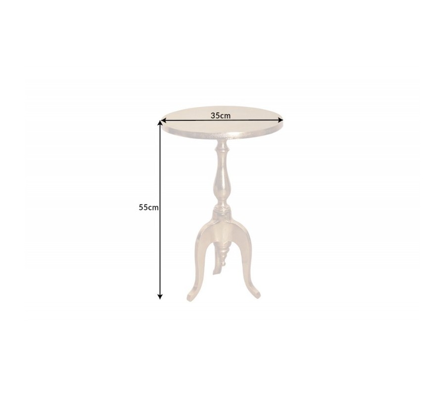Dizajnový príručný stolík Saphir sa pýši svojím elegantným vzhľadom s luxusným nádychom, ktorý vkusne doplní glamour i art deco ladené priestory obývačiek, predsiení či kancelárií. Stolík je vyrobený z kovu a jeho konštrukcia pozostáva z okrúhlej vrchnej dosky a podstavy s tromi tvarovanými nožičkami. Precízne línie a zaoblené tvary podstavy vnášajú do dizajnu unikátny luxusný nádych s honosným glamour efektom, Celá konštrukcia sa nesie vo výraznej zlatej farbe, ktorá nádherne rozžiari i tmavšie ladené priestory a upúta pozornosť. Vďaka zlatej farebnosti sa stolík Saphir výborne kombinuje predovšetkým s kontrastnými tmavšámi odtieňmi. Dokonalo vynikne v priestoroch zariadených nábytkom z kovu či skla v kombinácii s tmavou zamatovou sedačkou či kreslom. Príručný stolík Saphir dizajnovo doplní vaše priestory a zároveň prakticky poslúži na vystavenie dekorácií, izbových rastlín či odloženie knihy a šálky čaju.