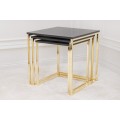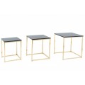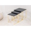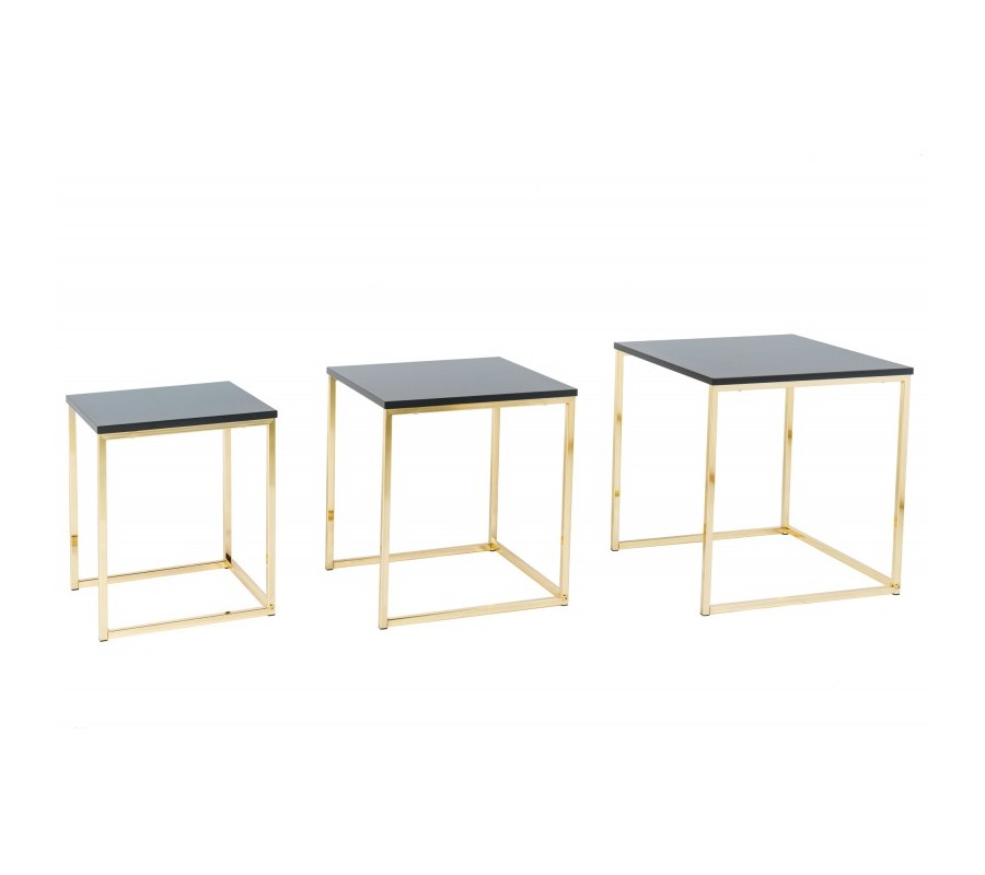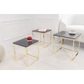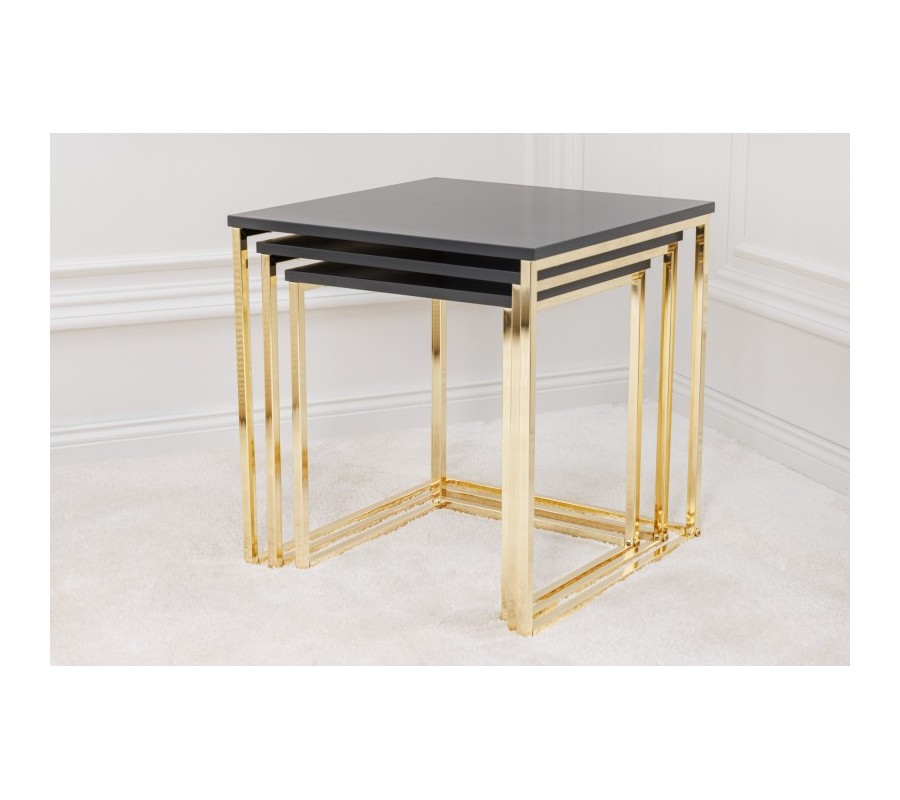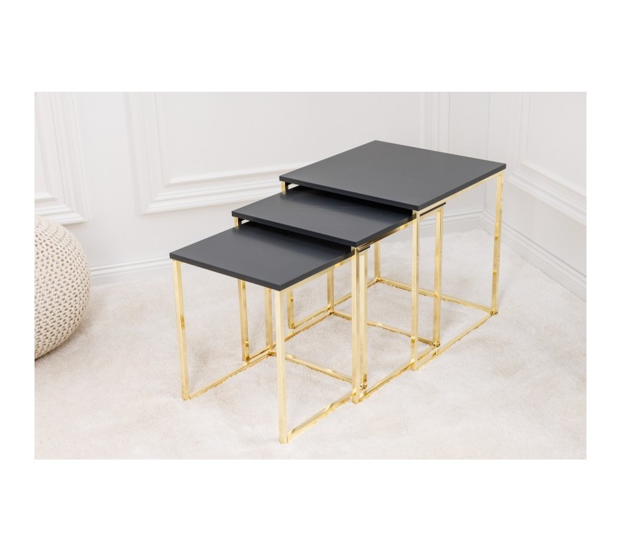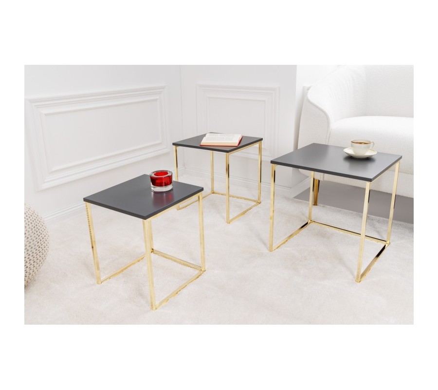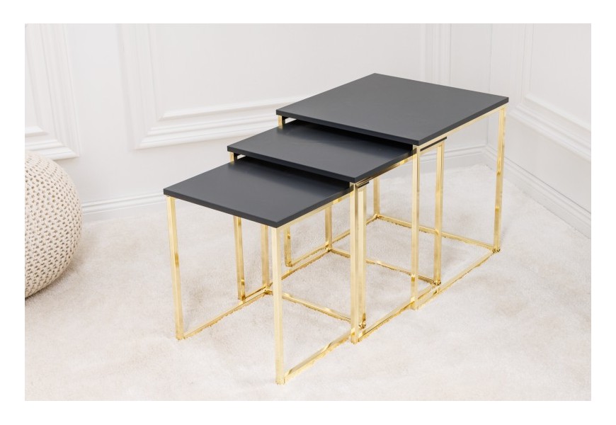 Art deco sada troch príručných stolíkov Trastoll štvorcového tvaru v antracitovom prevedení so zlatými nožičkami 42cm