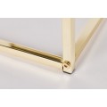 Pútavý dizajn príručných stolíkov zo sady Trastoll zaujme milovníkov art deco štýlu s umeleckou dušou, ale aj milovníkov čistých jednoduchých línií. Vrchná doska všetkých troch stolíkov štvorcového tvaru je vyrobená z lakovaného dreva a dĺžka hrán stolíkov stúpa on najmenšieho 30cm (výška 36cm), cez stredný 35cm (výška 39cm) až po najväčší stolík s hranou 40cm (výška 42cm). Podmanivá antracitová sivá farba vytvára magický kontrast s výraznými zlatými nožičkami s vysoko lesklým chrómovým povrchom. Nožičky sa spájajú vzájomne a tvarujú podstavu jednoduchého tvaru zabezpečujúcu stabilitu a pevnosť stolíkov. Výhodou sady je jednoduchá skladnosť a praktické využitie takmer všade v rámci domácnosti. Poslúžia ako pomocníci pri odkladaní vecí v obývačke, vstupnej hale ako úložný priestor na kľúče či v modernej art deco ladenej jedálne k vysokej vitríne na zlatých nožičkách. Stolíky Trastoll farebne vyniknú v kombinácii s jasnými pastelovými farbami ako je žltá, ružová či modrá, ale aj s bielou a krémovou na stenách či koberci.