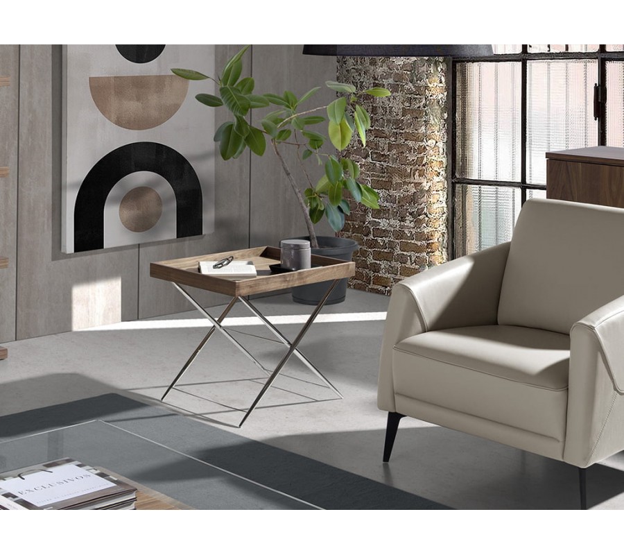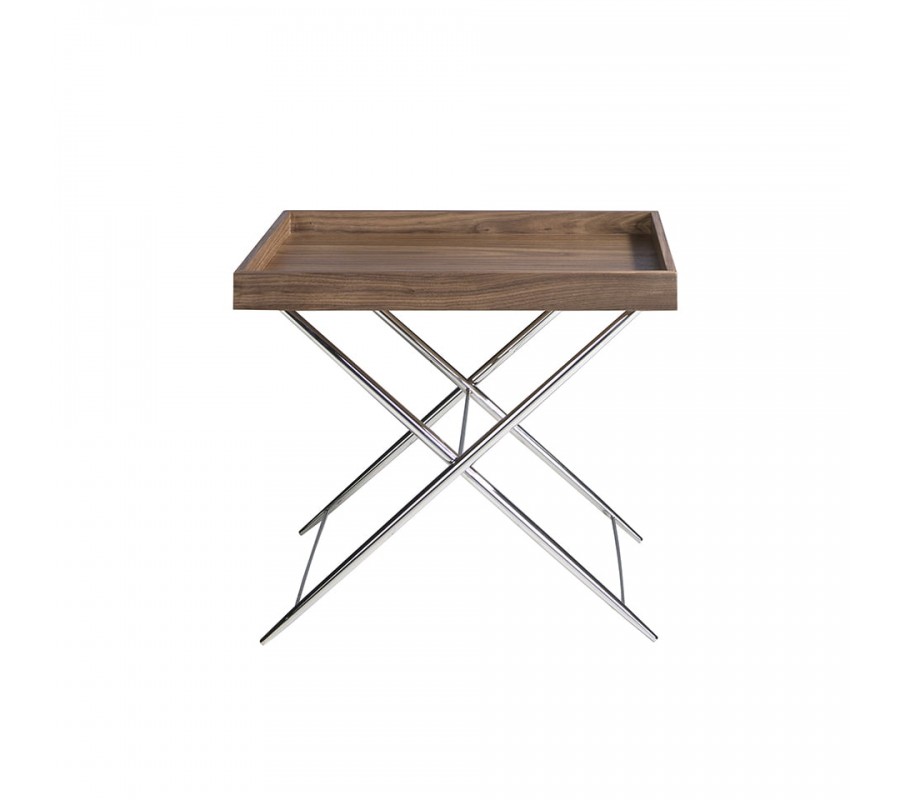 Dizajnový príručný stolík z kolekcie Vita Naturale je perfektným doplnkom do Vášho štýlového interiéru. Tento príručný stolík sa pýši minimalistickým, no moderným talianskym dizajnom s vrchnou doskou v podobe hnedého podnosu. Prekrížené chrómové nohy z nehrdzavejúcej ocele moderného príručného stolíka Vita Naturale sú jeho kľúčovým prvkom, ktorý dodá Vašej miestnosti nádych elegancie a avantgardy.