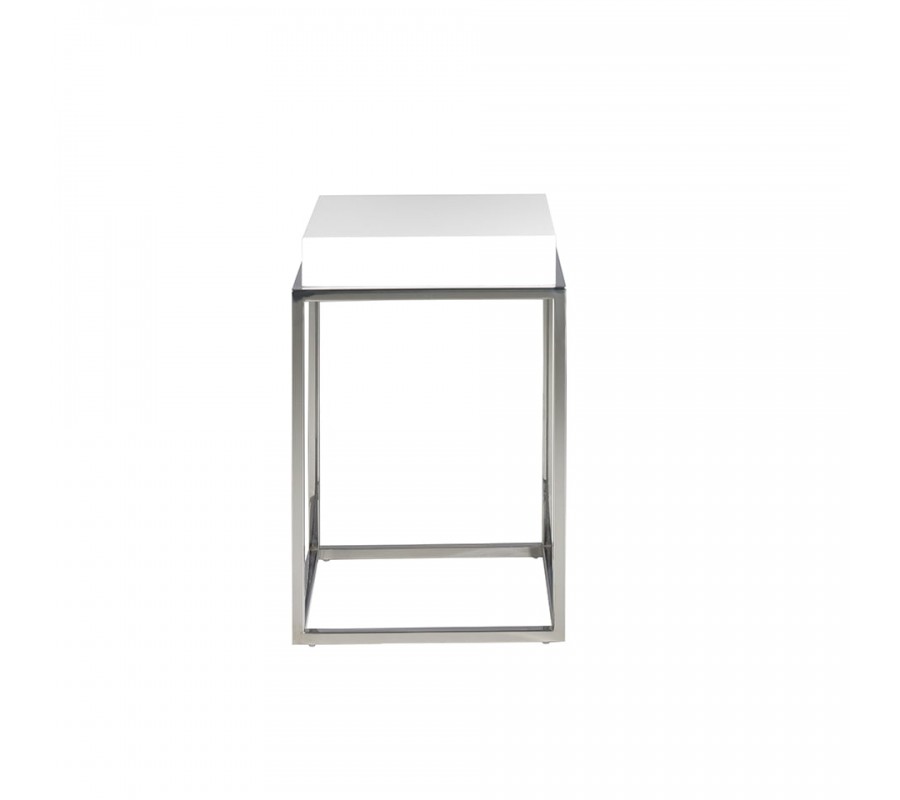 Predstavujeme vám náš moderný priručný  stolík z kolekcie nábytku Vita Naturale, ktorý je ideálnym kúskom na dodanie moderného vzhľadu vašej obývačke alebo spálni. Tento príručný stolík, vyrobený s pevnou vrchnou doskou z lakovaného dreva DM v lesklej bielej farbe, vyniká originálnou konštrukciou z pochrómovaných nôh z nehrdzavejúcej ocele.