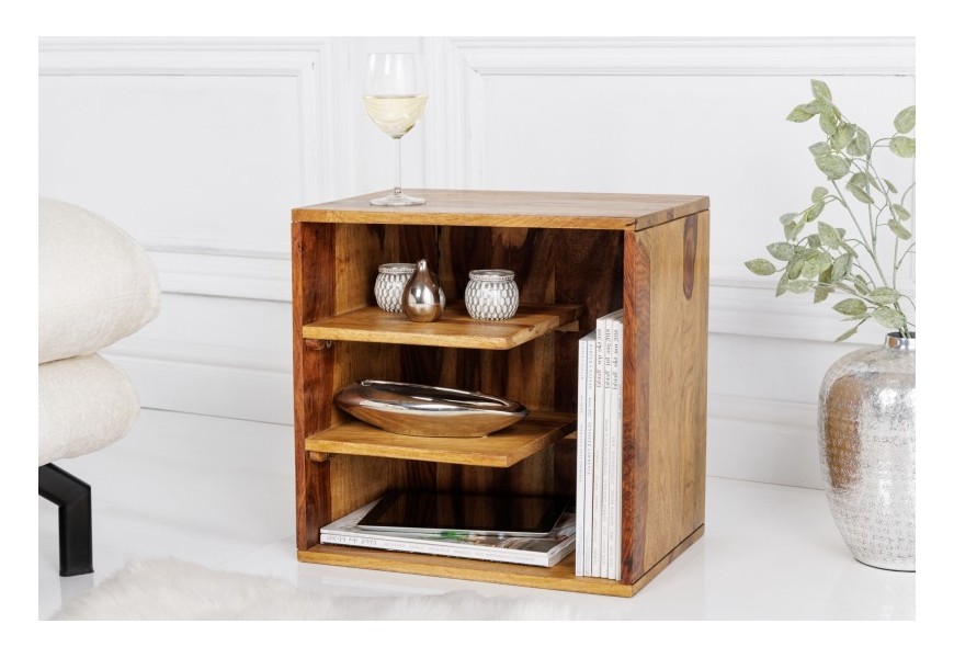 Vidiecky príručný stolík Bareo z masívneho palisandrového dreva v hnedom vyhotovení s poličkami 43cm