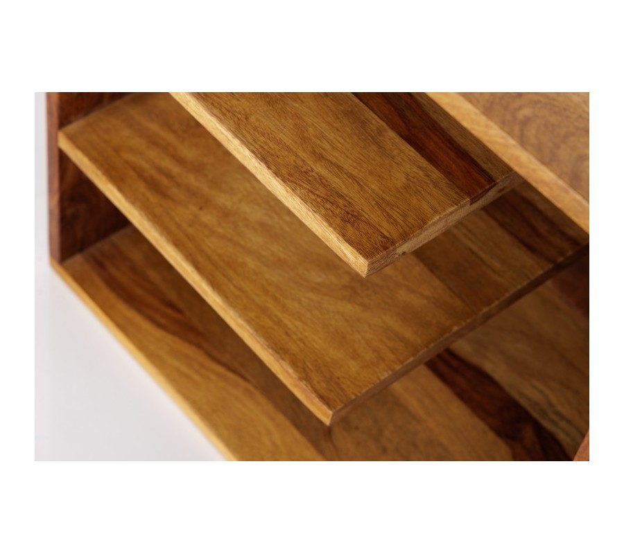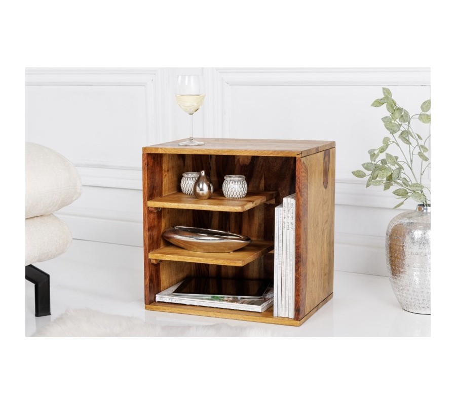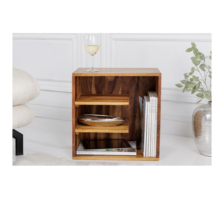 Svieže prevedenie vidieckeho príručného stolíka Bareo štýlovo doplní každú obývačku či vstupnú halu väčších či menších rozmerov. Konštrukcia bez nožičiek je vyrobená z exotického masívneho dreva sheesham - známeho ako palisandrové drevo, ktoré elegantným, minimalistickým spôsobom necháva vyniknúť prirodzenú kresbu dreva v odtieňoch hnedej farby. Vďaka svojim kompaktným rozmerom je možné stolík presúvať podľa potreby po miestnosti tak, aby vám bol vždy k dispozícii či už potrebujete extra priestor na pohostenie alebo jednoducho milujete doplnky v podobe porcelánových váz, misiek či sošiek. Disponuje dvomi vnútornými poličkami zakončenými oblým rohom. Príručný stolík Bareo sa stane skvelým doplnkom do vidiecky ladeného interéru, kde spolu s béžovou čalúnenou sedačkou či konferenčným stolíkom s rovnako dominantnou kresbou dreva vytvorí príjemnú atmosféru pre dokonalé strávenie vášho voľného času.