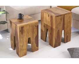 Masívna sada dvoch príručných stolíkov Cascara III z hnedého mangového dreva 35cm