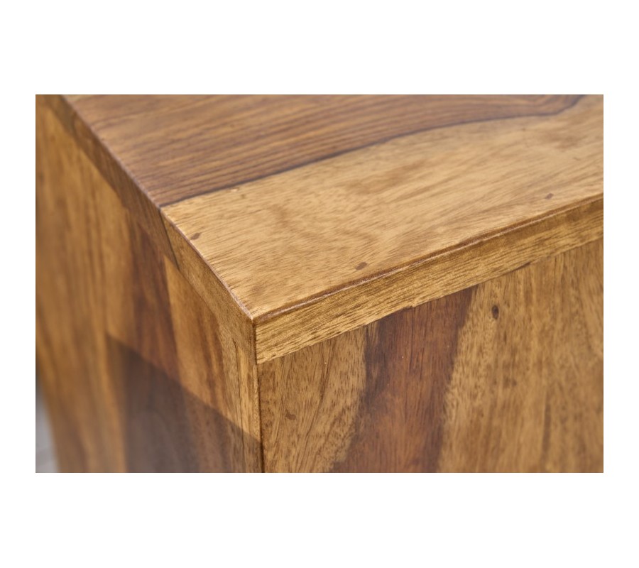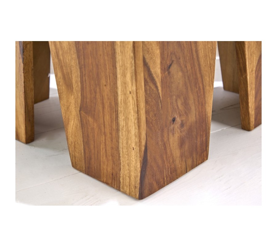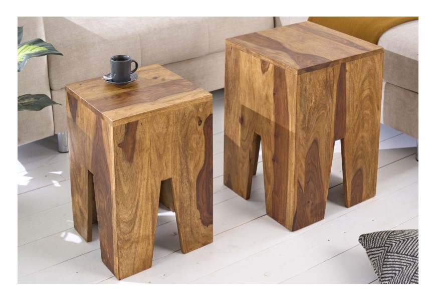 Elegantné masívne prevedenie dvoch príručných stolíkov Cascara III prichádza vo forme dvoch maximálne praktických pomocníkov vhodných do každej obývačky ladiacej farebne. Telo tvorí jednoduchá silueta v tvare kvádra, pričom nožičky sú oddeľuje výber v tvare písmena A v spodnej časti stolíkov. Príručné stolíky sú vyrobené z masívneho palisandrového dreva v prírodne hnedej variante s vynikajúcou kresbou dreva. Stolíky pôsobia útulným dojmom a skvelo sa budú hodiť do vidiecky či industriálne ladených obývačiek. Čo sa týka farbenosti - stanú sa skvelým doplnkom zelenej či béžovej čalúnenej sedačky v tvare písmen L či U spolu s komodou z masívu v podobnom hnedom prevedení. Vďaka svojim kompaktným rozmerom si sadu stolíkov jednoducho presuniete tak, kam potrebujete mať čokoľvek potrebné po ruke. Masívna sada príručných stolíkov Cascara III poteší milovníkov praktickej aj dizajnovej stránky kvalitného nábytku.
