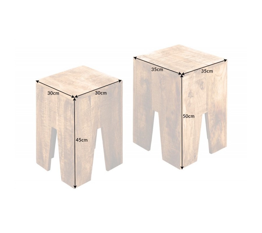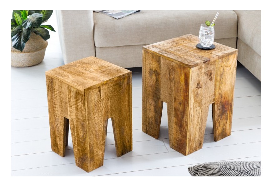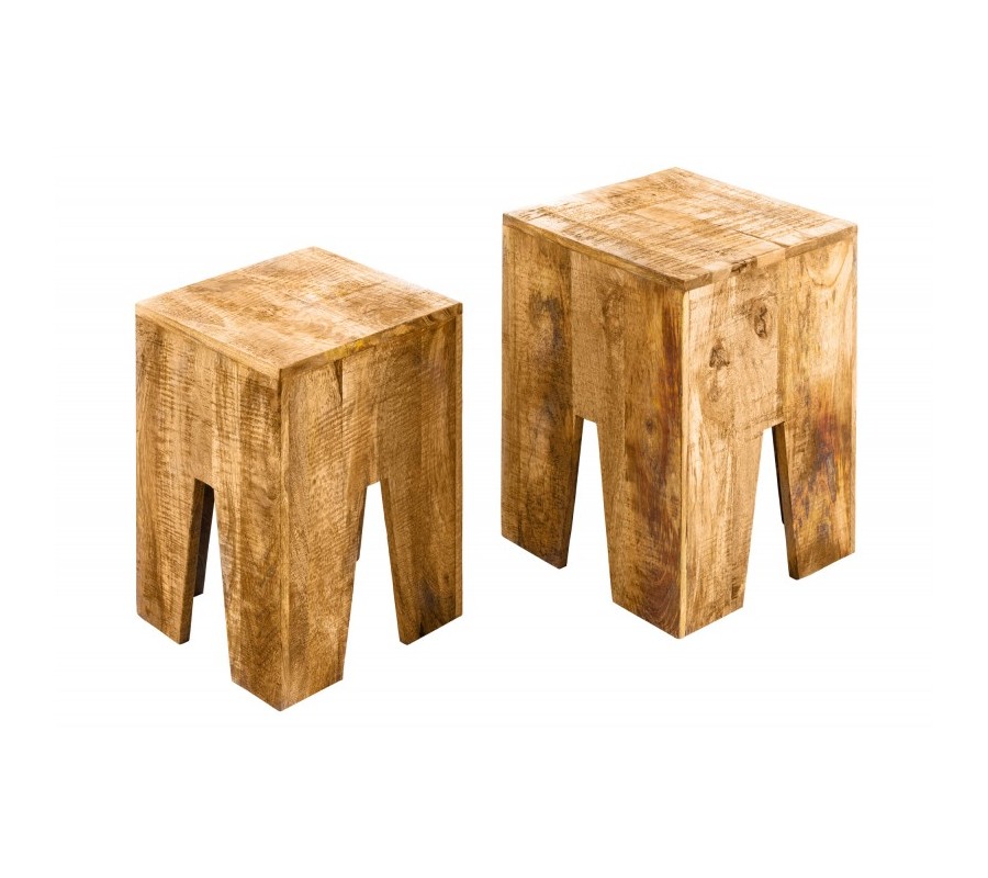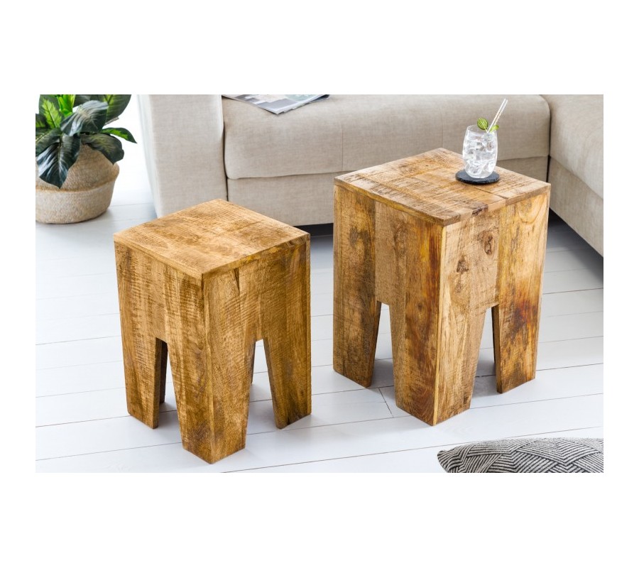 Vidiecka sada dvoch masívnych príručných stolíkov Cascara II z hnedého mangového dreva 50cm