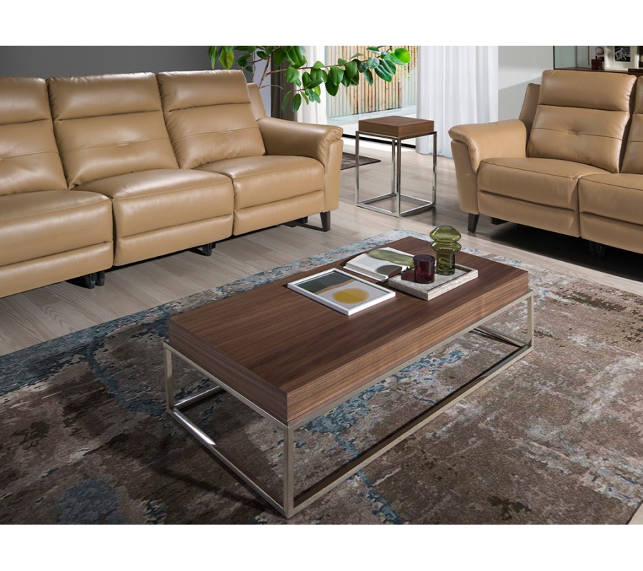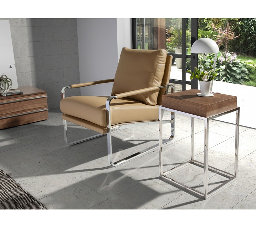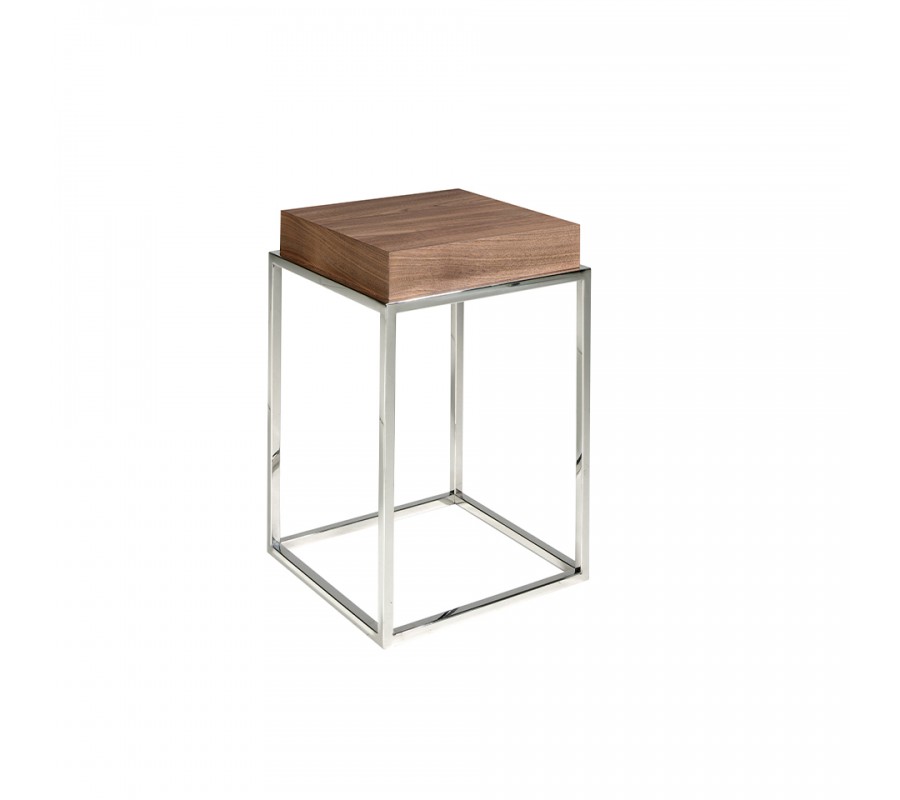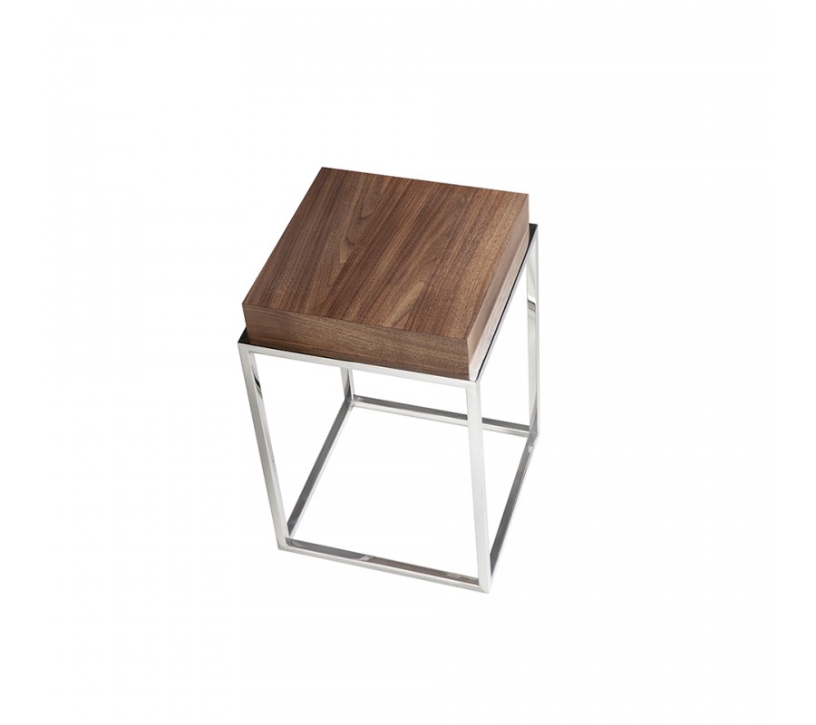 Štýlový príručný stolík Forma Moderna disponuje štvorcovou vrchnou doskou vyrobenou z dreva, dyhovaného kvalitným orechom v hnedej farbe. Drevené prevedenie taktiež kladie dôraz na zvýraznenie svojej kresby, čím sa umocní moderný, naturálny vzhľad.