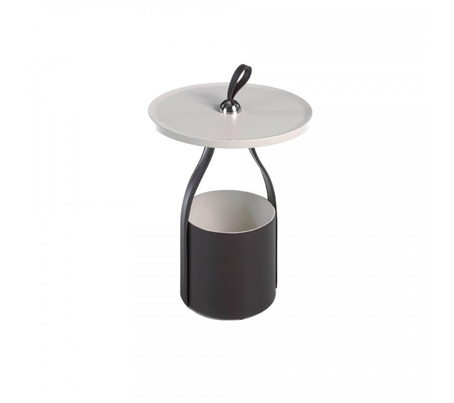 Stolík Forma Moderna sa pýši okrúhlou vrchnou doskou z dreva, ktorá sa nesie v matnom, krémovo bielom lakovaní. Tento nádych elegancie je umocnený pevnou, eko-koženou rukoväťou a podstavou v čokoládovo hnedej farbe, čo dodáva celému kúsku výnimočný moderný štýl a nadčasový dizajn.