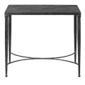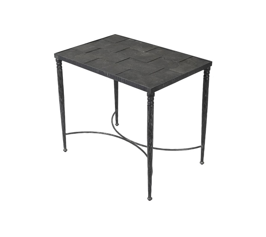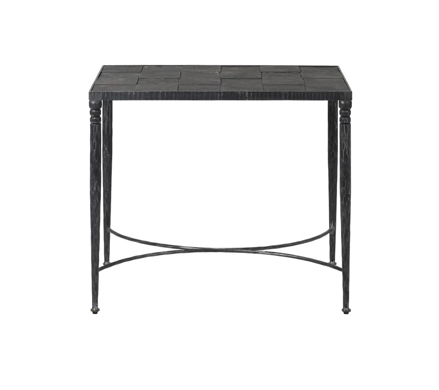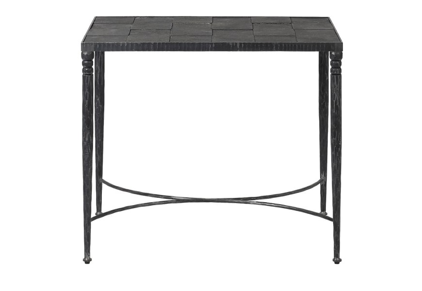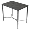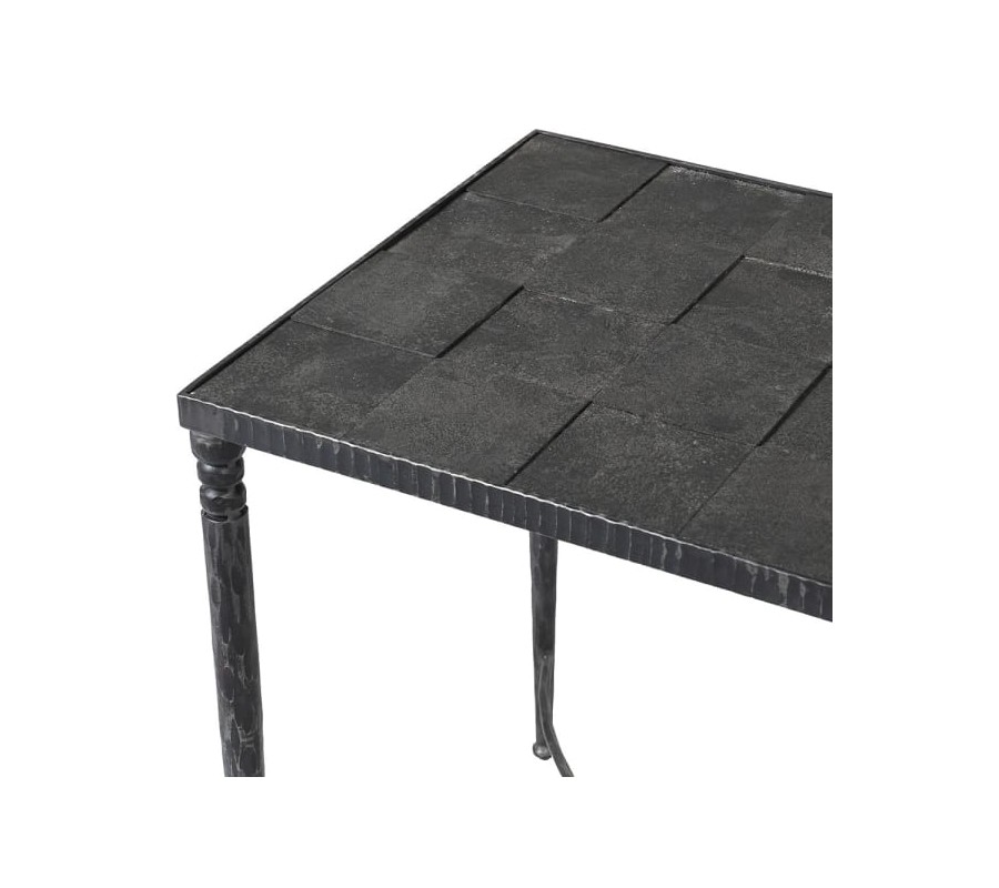 Doplňte si váš interiér dizajnovým príručným stolíkom Feyre, ktorý predstavuje spojenie vintage prvkov a inovatívneho vzhľadu! Už na prvý pohľad zaujme svojím netradičným vzhľadom a konštrukciou kombinujúcou materiál kovu a kameňa. Dominantou dizajnu stolíka je vrchná doska pozostávajúca zo vzoru tvoreného jednotlivými kamennými štvorcovými útvarmi, čím vzniká zaujímavý nerovný a reliéfny povrch. Vrchnú dosku dopĺňajú kovové nohy s ozdobným rustikálne pôsobiacim zdobením, ktoré vnášajú do dizajnu nádych štýlu vintage. Prevedenie v tmavej sivočiernej farbe zaručuje výbornú možnosť kombinovania s ďalšími kúskami vo vašom interiéri. Príručný stolík Feyre možno využiť v priestoroch obývačiek, kancelárií či hosťovských izieb, kde výborne poslúžia ako doplnok ku kreslu či sedačku alebo samostatne ako solitér. Nadčasový vzhľad v prepojení s vintage ozdobnými prvkami doplní vaše priestory po estetickej, ale i praktickej stránke.