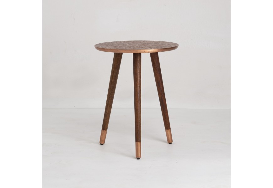 Luxusný príručný okrúhly stolík Alcasar s ručným orientálnym zdobením staromedená 50 cm