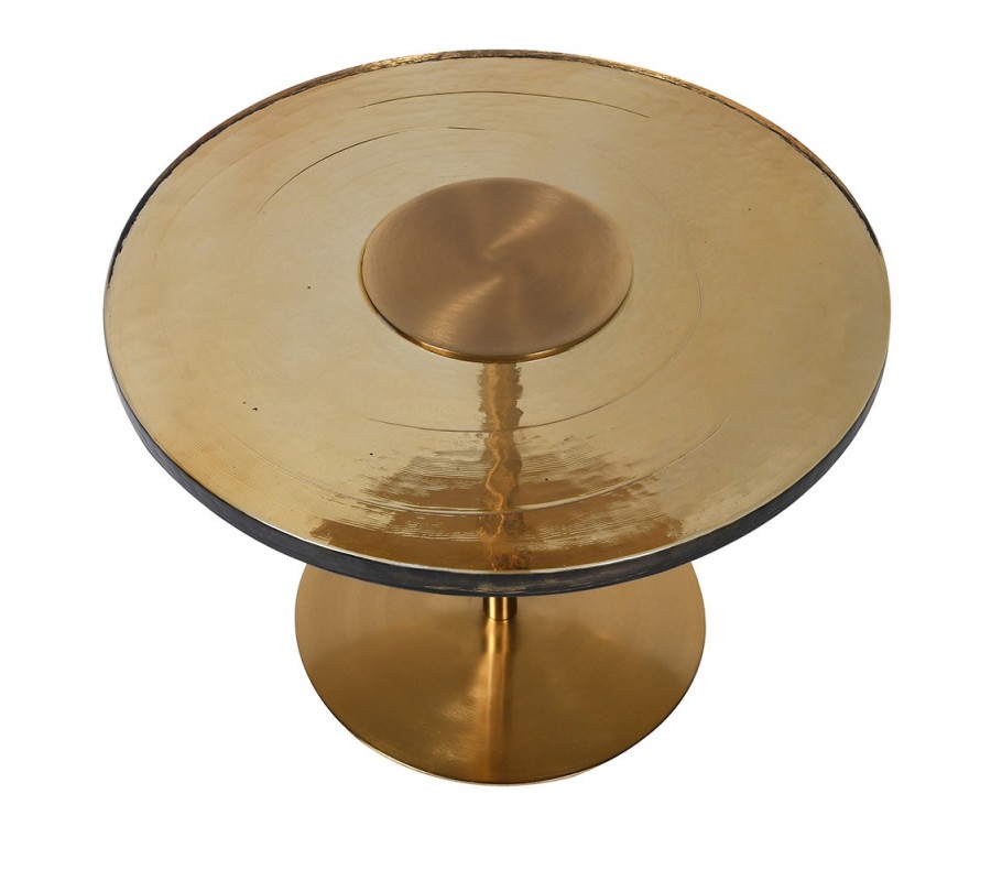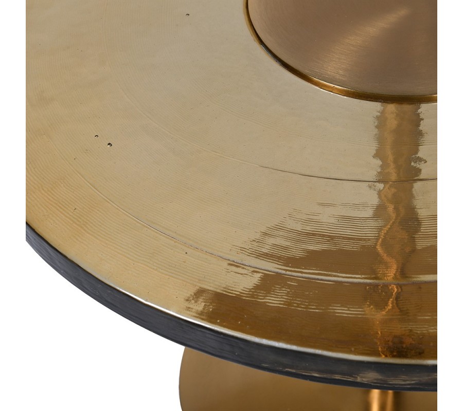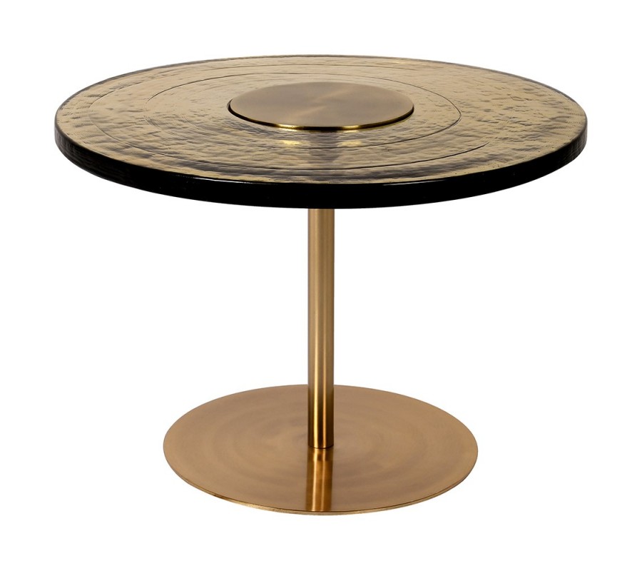 Art-deco okrúhly príručný stolík Countess z kovovej podstavy zlatej farby so sklenenou povrchovou doskou 61cm