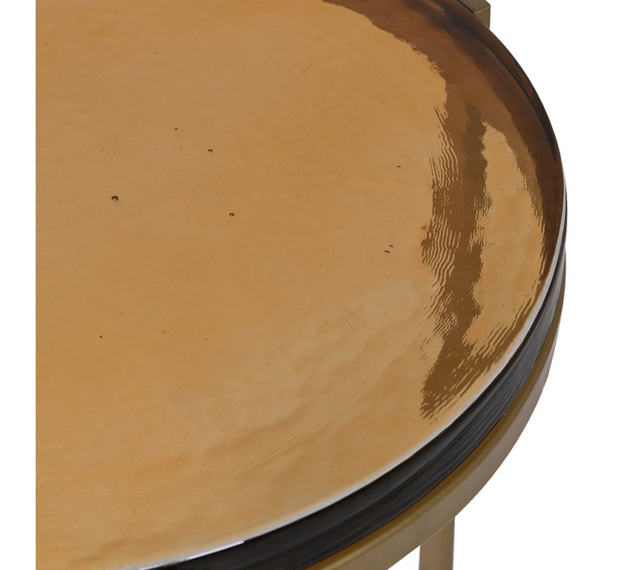 Dizajnový art deco set príručných stolíkov Aquileia so sklenenou jantárovou vrchnou doskou zlatá žltá 56 cm