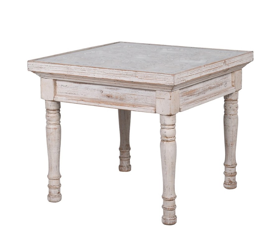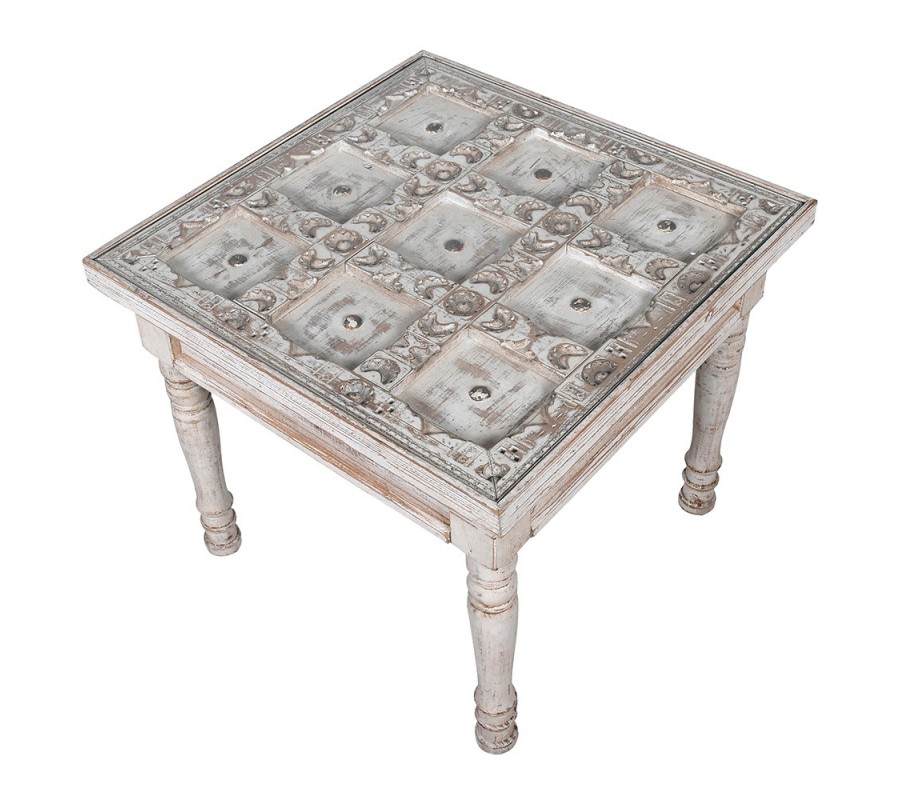 Luxusný vintage príručný stolík Valensole v provensálskom štýle so sklenenou doskou a kazetovým zdobením biela 60 cm