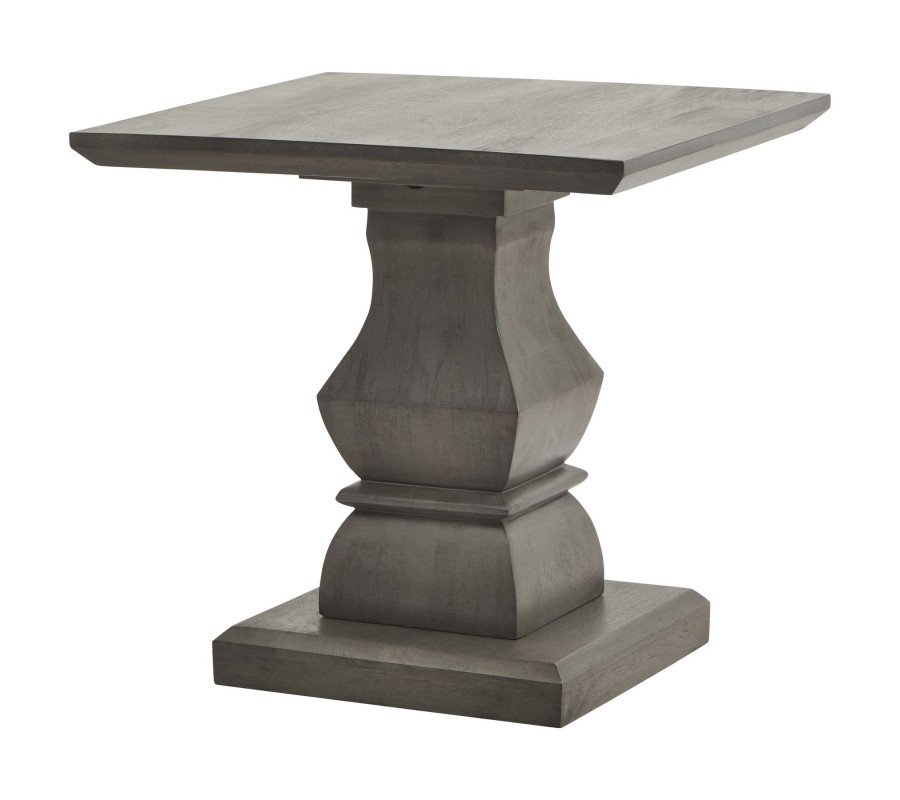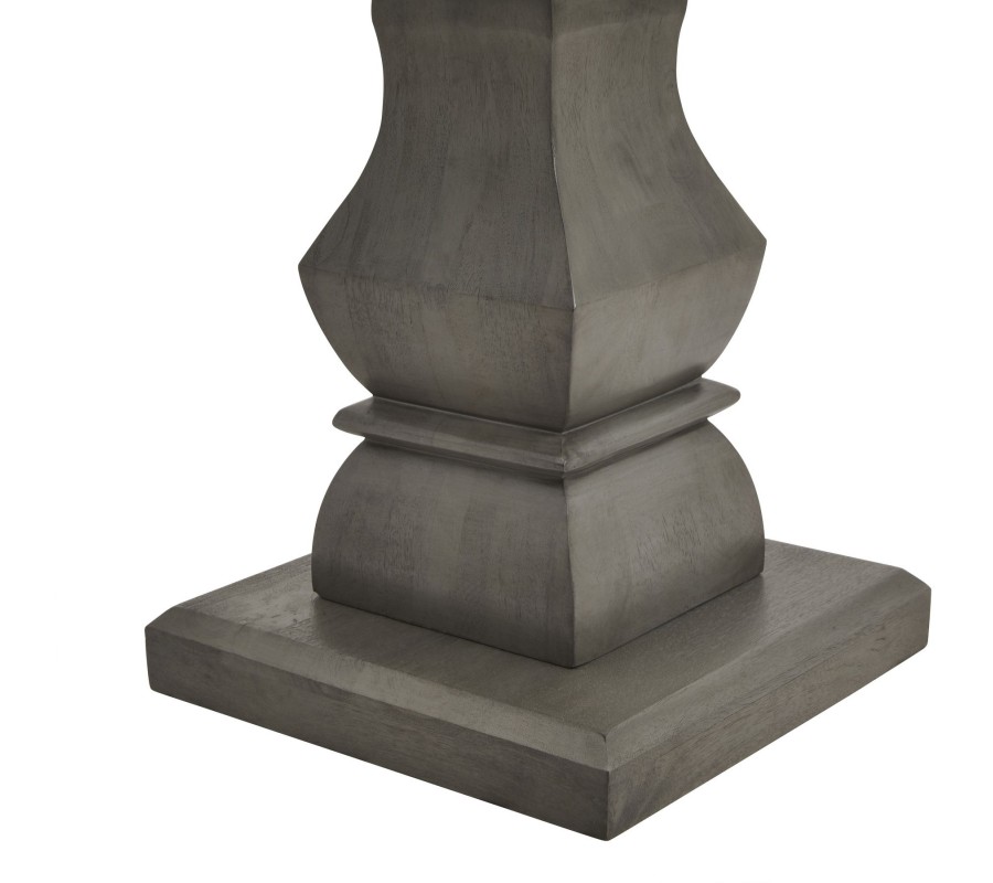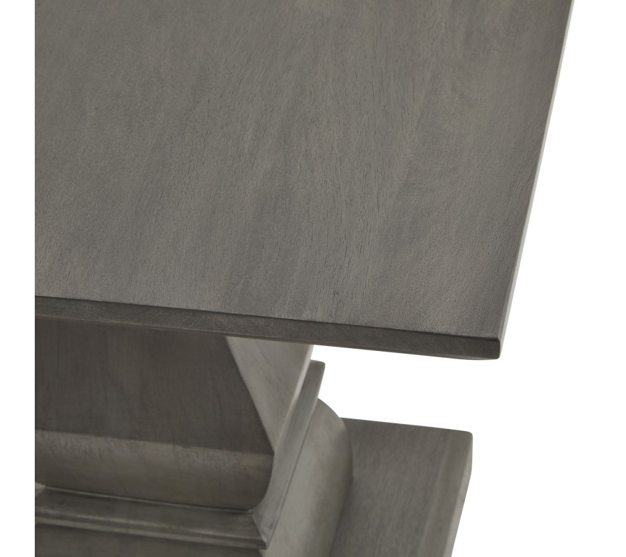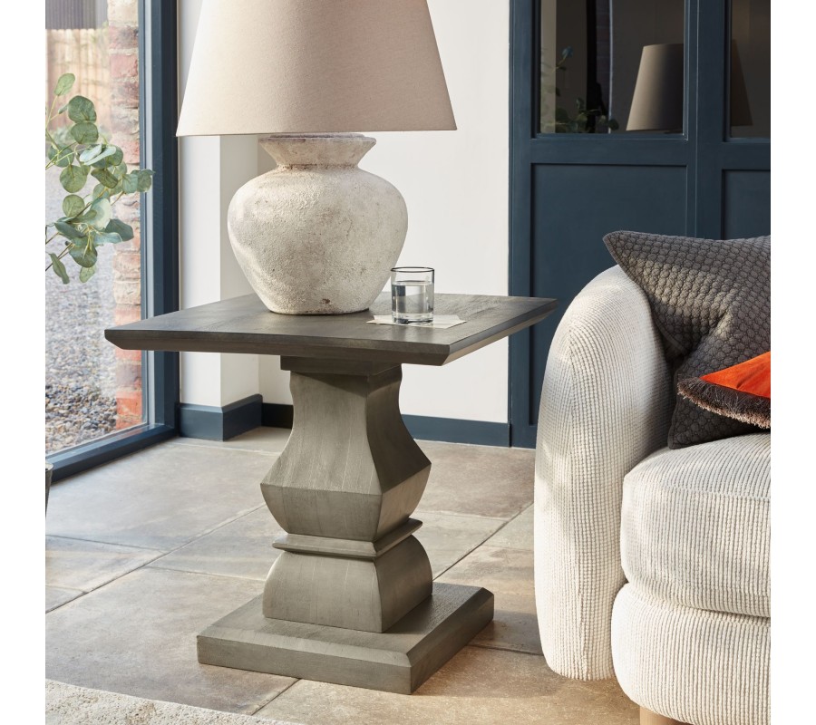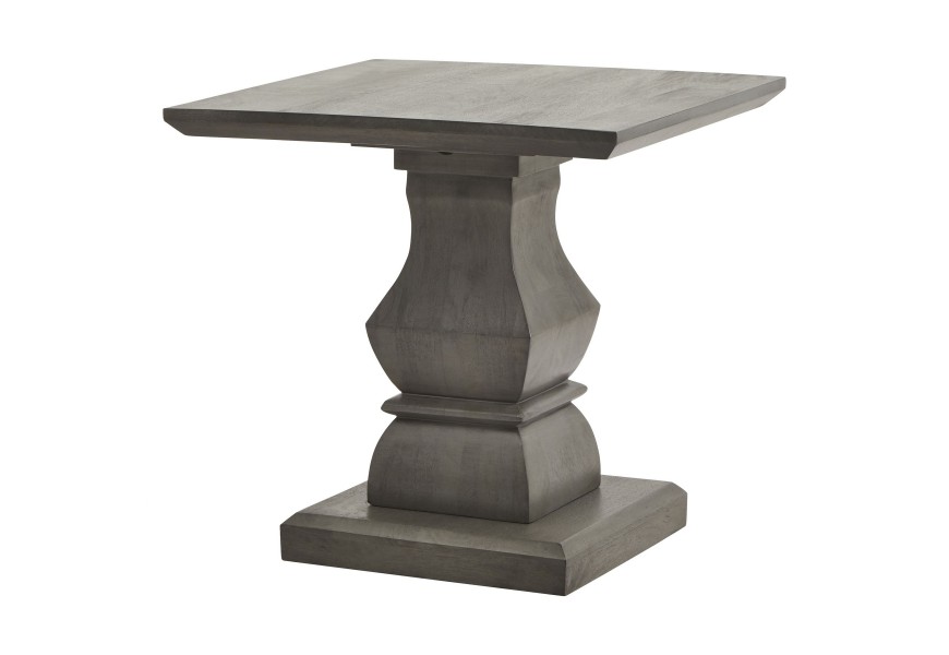 Príručný stolík Lucia v sebe spája remeselnú zručnosť, luxusné exotické drevo a moderný dizajn inšpirovaný vidieckym nábytkom. Dizajnu dominuje stĺpovitá noha, ručne vyrezávaná z akáciového masívu. Tento materiál je mimoriadne obľúbený kvôli svojej tvrdosti a nábytok z neho je kvalitný a odolný. Tvar nohy je inšpirovaný vidieckym štýlom, pre ktorý sú typické vyrezávané siluety. Moderné prevedenie prináša do tejto kompozície rovné horizontálne línie prepojené elegantnými oblúkmi. Noha stola je vo vrchnej časti ukončená doskou so zošikmenými hranami, ktorá vytvára bohatý praktický odkladací priestor a na spodnej strane paralelnou štvorcovou podstavnou doskou, ktorá dodáva nábytku stabilitu. Sivé prevedenie je podporené naturálnymi šedými odtieňmi akáciového dreva a na hladkých povrchoch zároveň krásne vyniká prirodzená kresba letokruhov, ktorá dodáva stolíku prírodný nádych. Je ideálnym doplnkom do priestorov zariadených v neutrálnych svetlých odtieňoch a k nábytku z masívneho dreva, napríklad z rovnakej kolekcie Lucia, ktorú nájdete v našej ponuke. Hodí sa do obývačiek k svetlým kreslám alebo pohovke, kde bude pôsobiť nadčasový dojmom s nádychom vidieckej útulnosti. V jedálni môžete na stolík umiestniť lampu či živú zelenú rastlinu, čím vyzdvihnete jeho dekoratívny charakter.