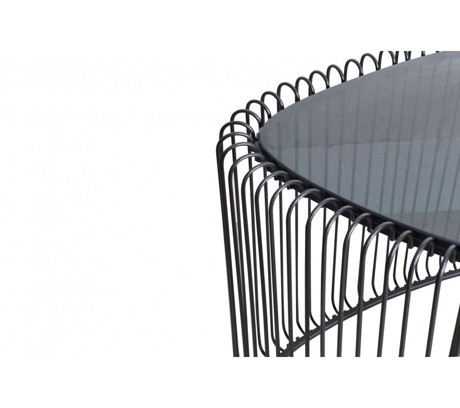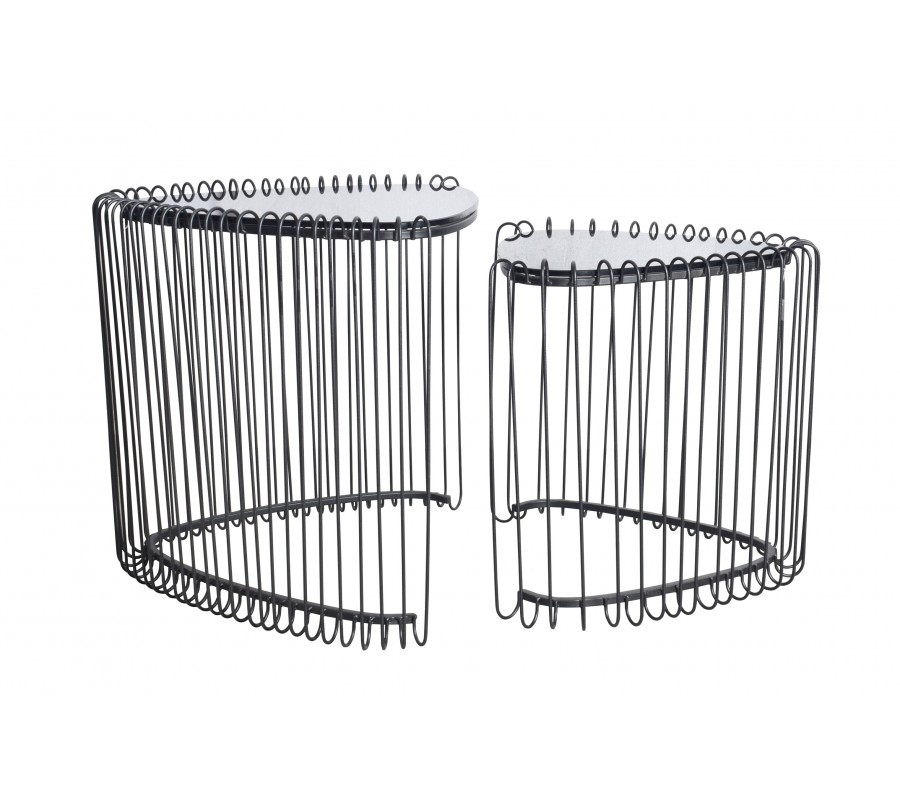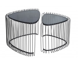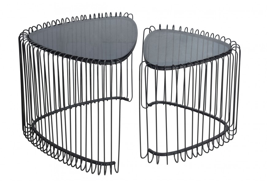 Set industriálnych konferenčných stolíkov Esme v trojuholníkovom tvare s dizajnovou podstavou z kovových káblov čierna 50 cm