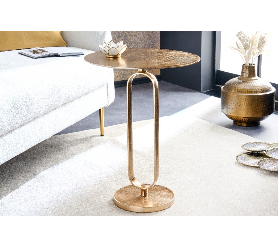 Art deco okrúhly zlatý kovový príručný stolík Zendy s glamour nádychom 60 cm