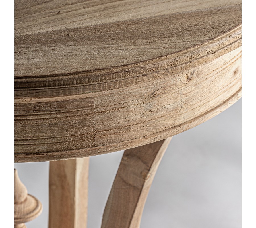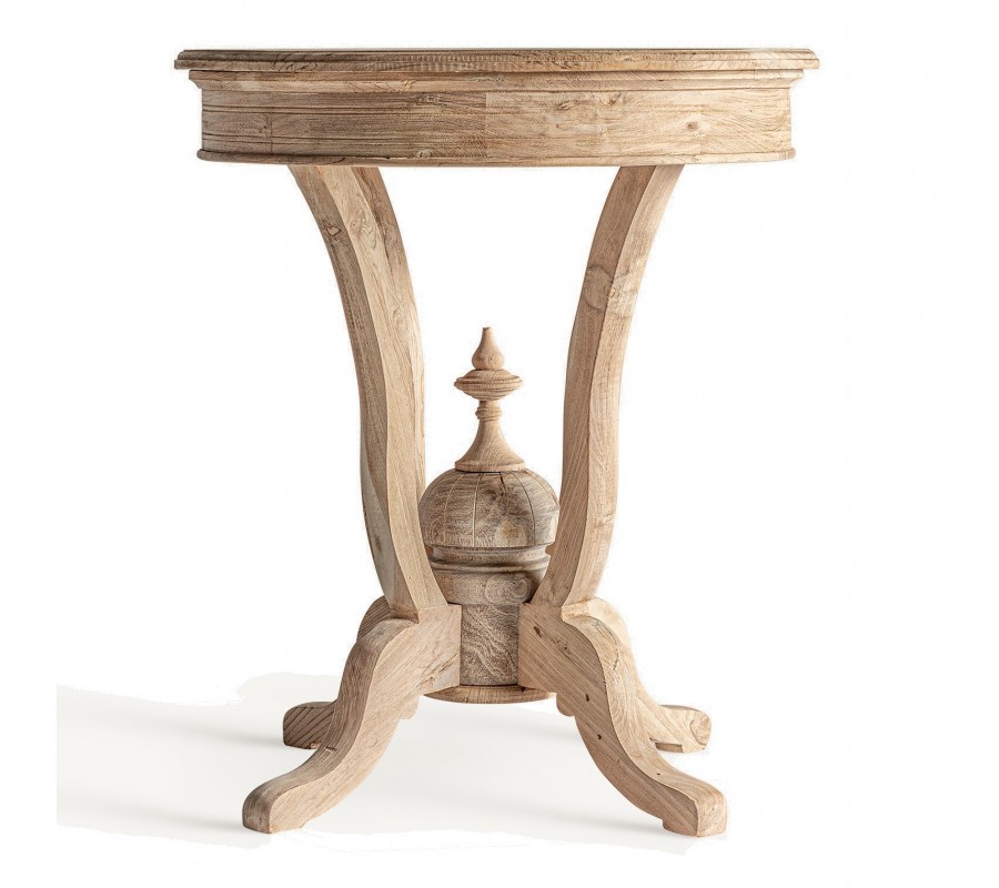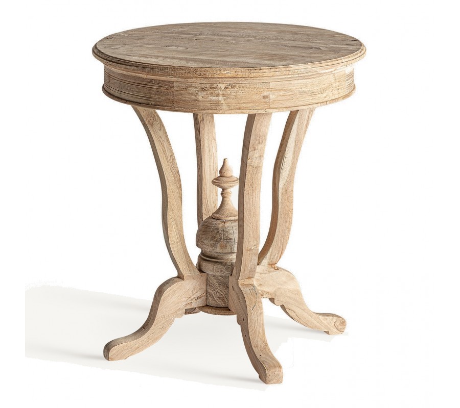 Luxusný masívny orientálny okrúhly príručný stolík Vallexa s vyrezávaným zdobením v prírodnej svetlej hnedej farbe 60 cm