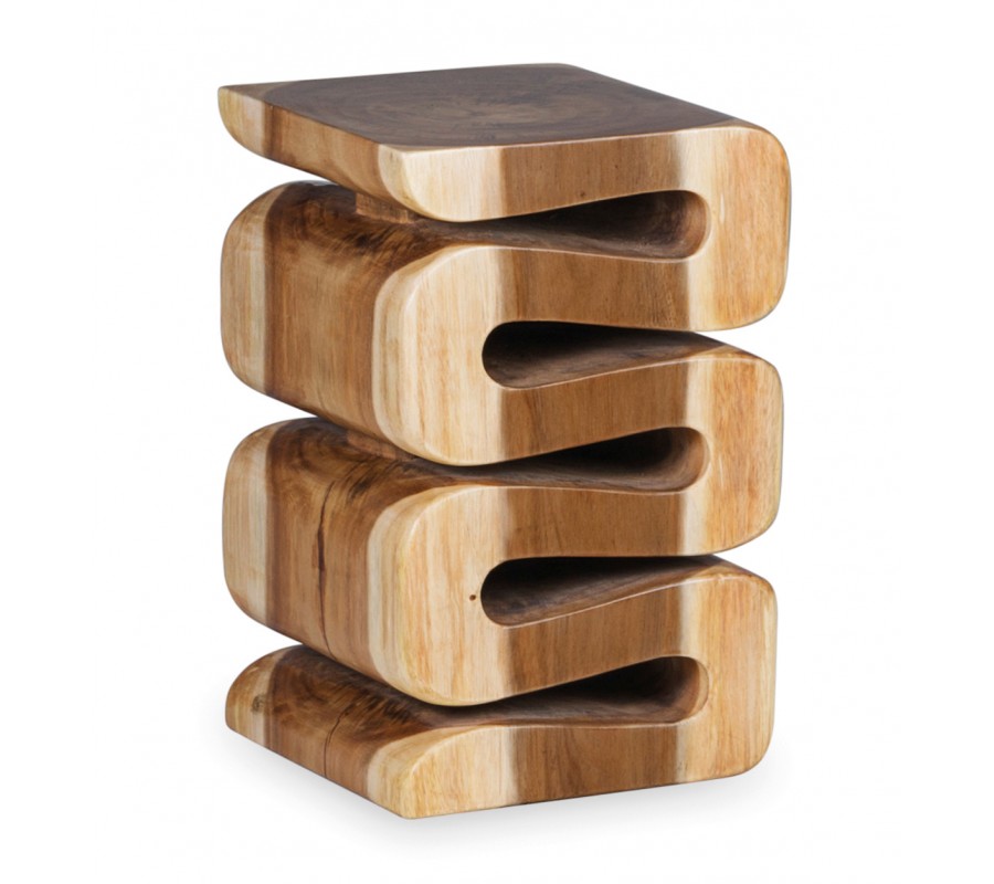 Masívny hnedý príručný stolík Rosario z exotického dreva suar so zvlneným dizajnom 45 cm