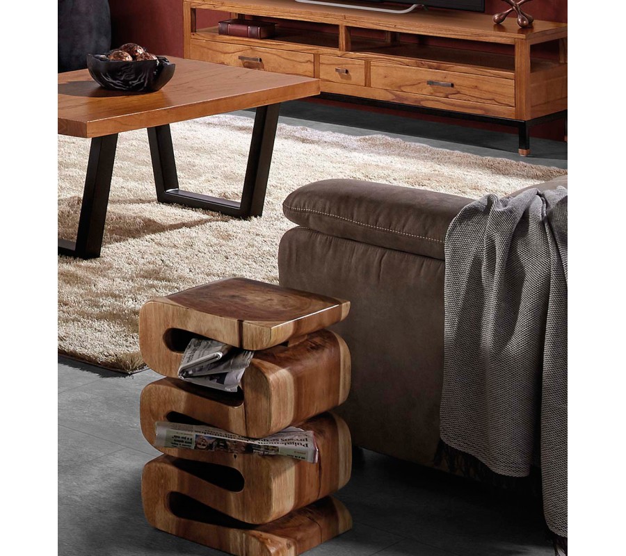 Je ideálnym doplnkom do moderne zariadenej obývačky, ktorej chcete dodať výrazný dekoračný prvok. Skvele doplní sedačku v neutrálnych teplých odtieňoch. Môžete ho tiež skombinovať s ďalším nábytkom z masívneho dreva v podobných teplých odtieňoch. Mohutná silueta vám tiež umožní využiť stolík ako podstavec pre dekoráciu či živú zelenú rastlinu, čím ešte zdôrazníte prírodný charakter nábytku.